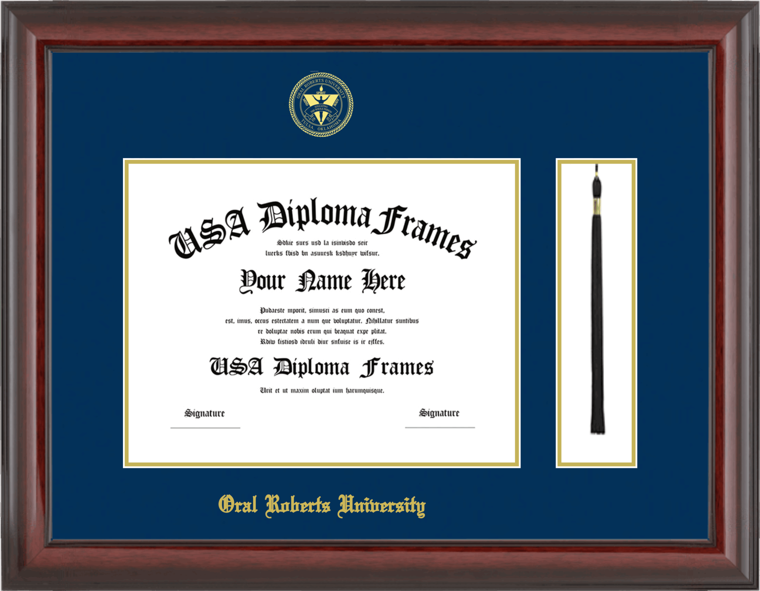 Oral Roberts University Diploma Frame with Tassel – Cherry Mahogany Glossy – Navy and Gold Mat