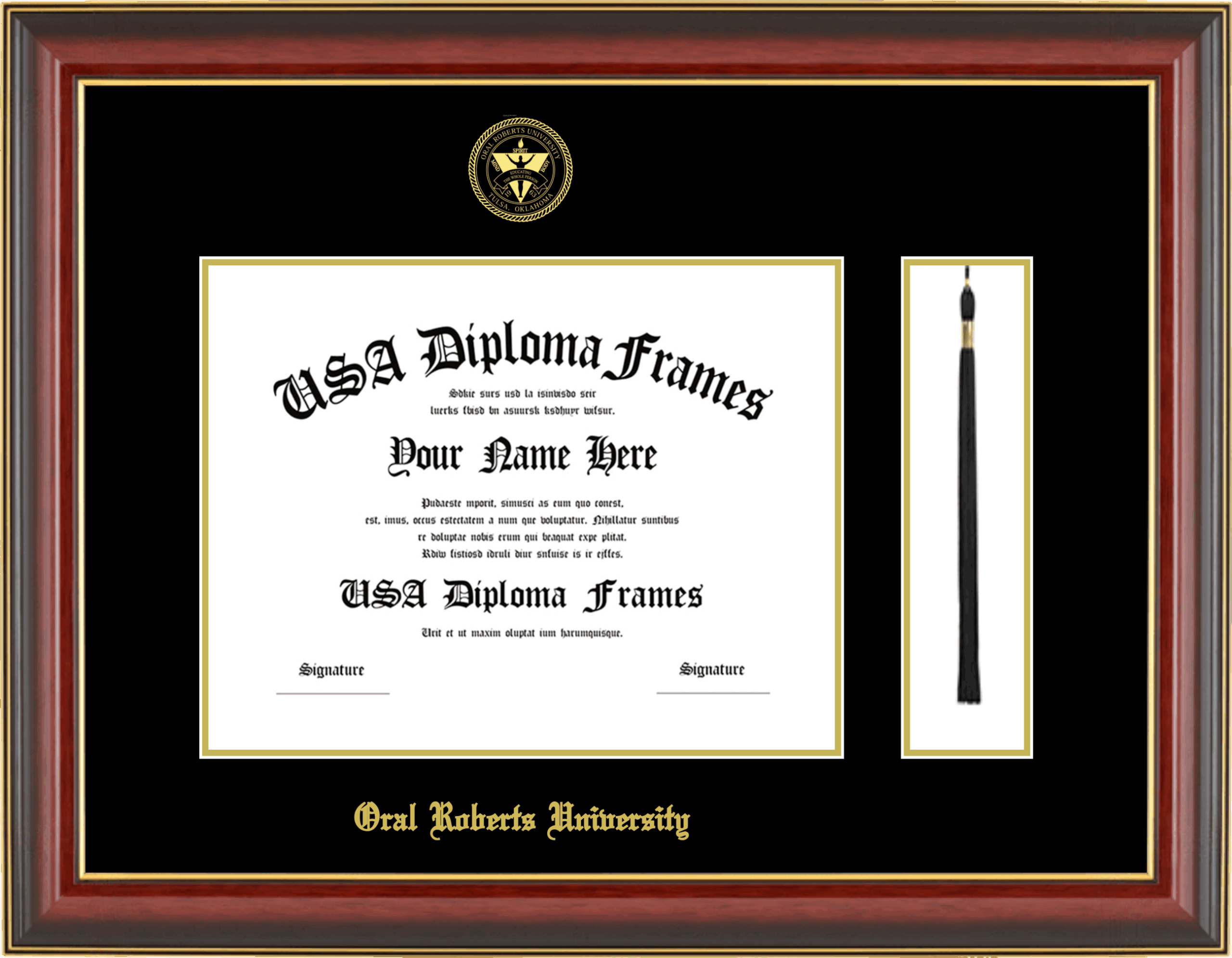 Oral Roberts University Diploma Frame with Tassel – Cherry Mahogany Gold Trim Glossy – Black and Gold Mat