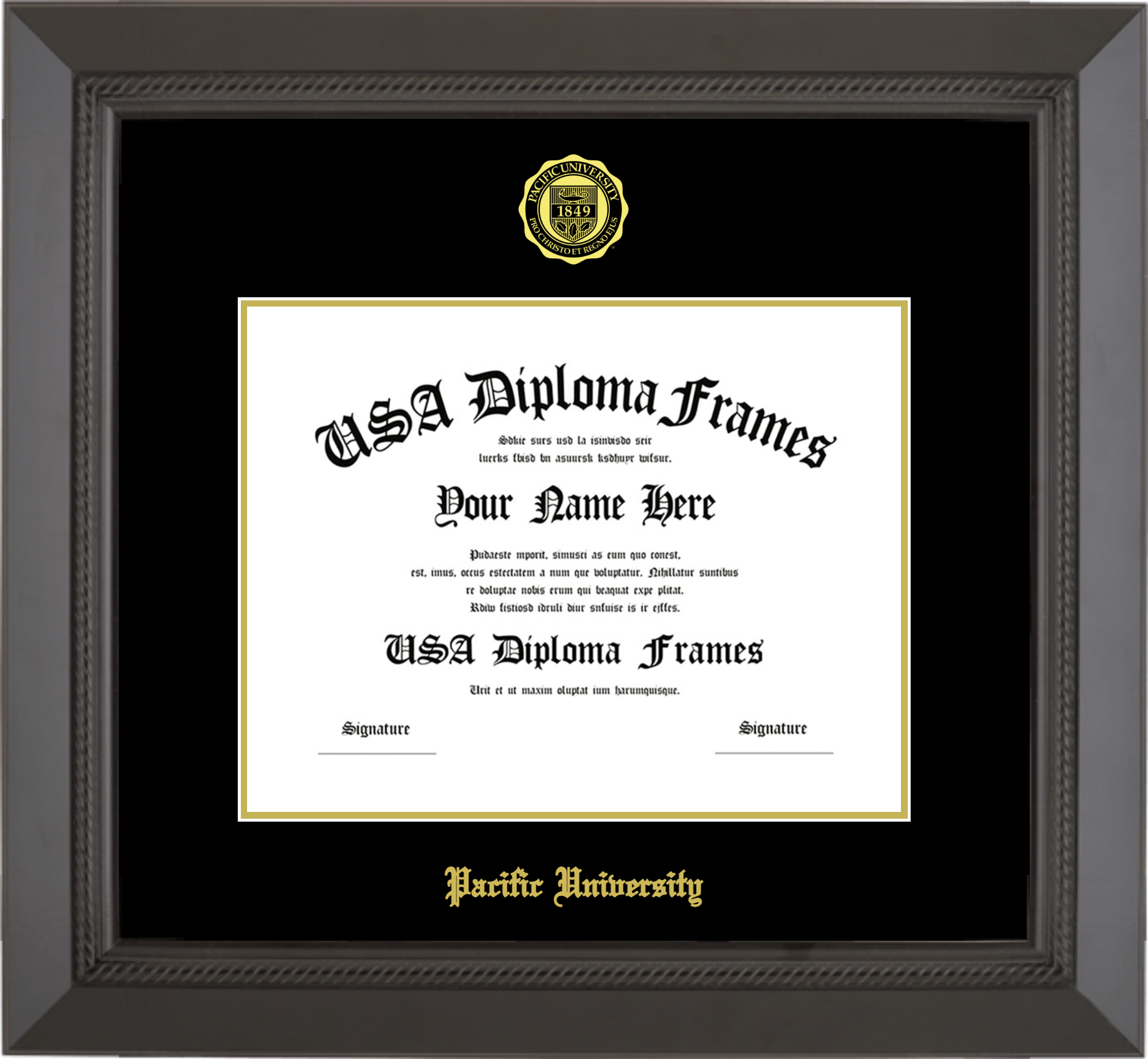 Pacific University Diploma Frame – Black Rope – Black and Gold Mat