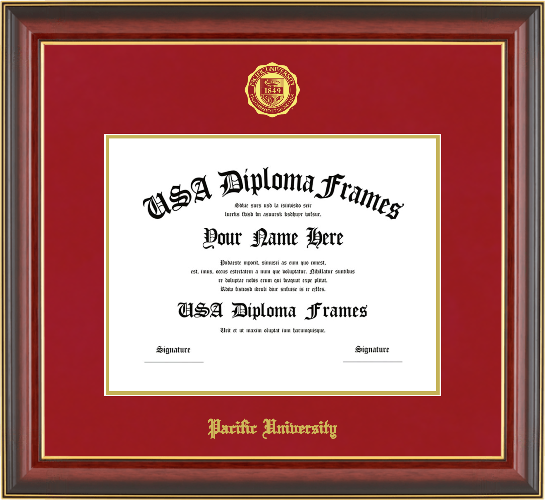 Want to explore more styles? Browse our full range of diploma frame layouts, or visit the Pacific University to view options available for your school. Looking for a fully personalized design? Try our custom Frame Builder and create a frame that’s uniquely yours.