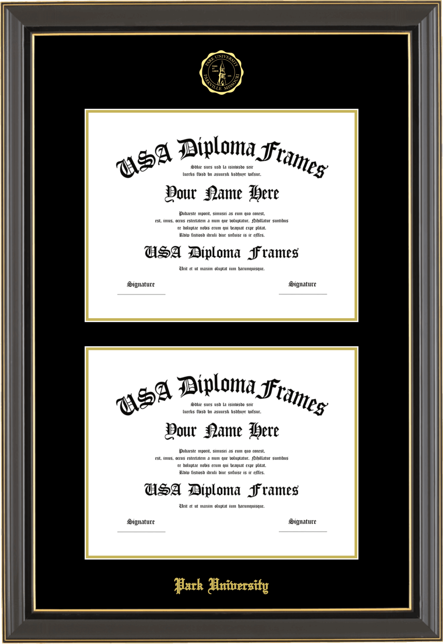 Park University Double Diploma Frame – Double Document – Black Gold Trim Glossy – Black and Gold Mat