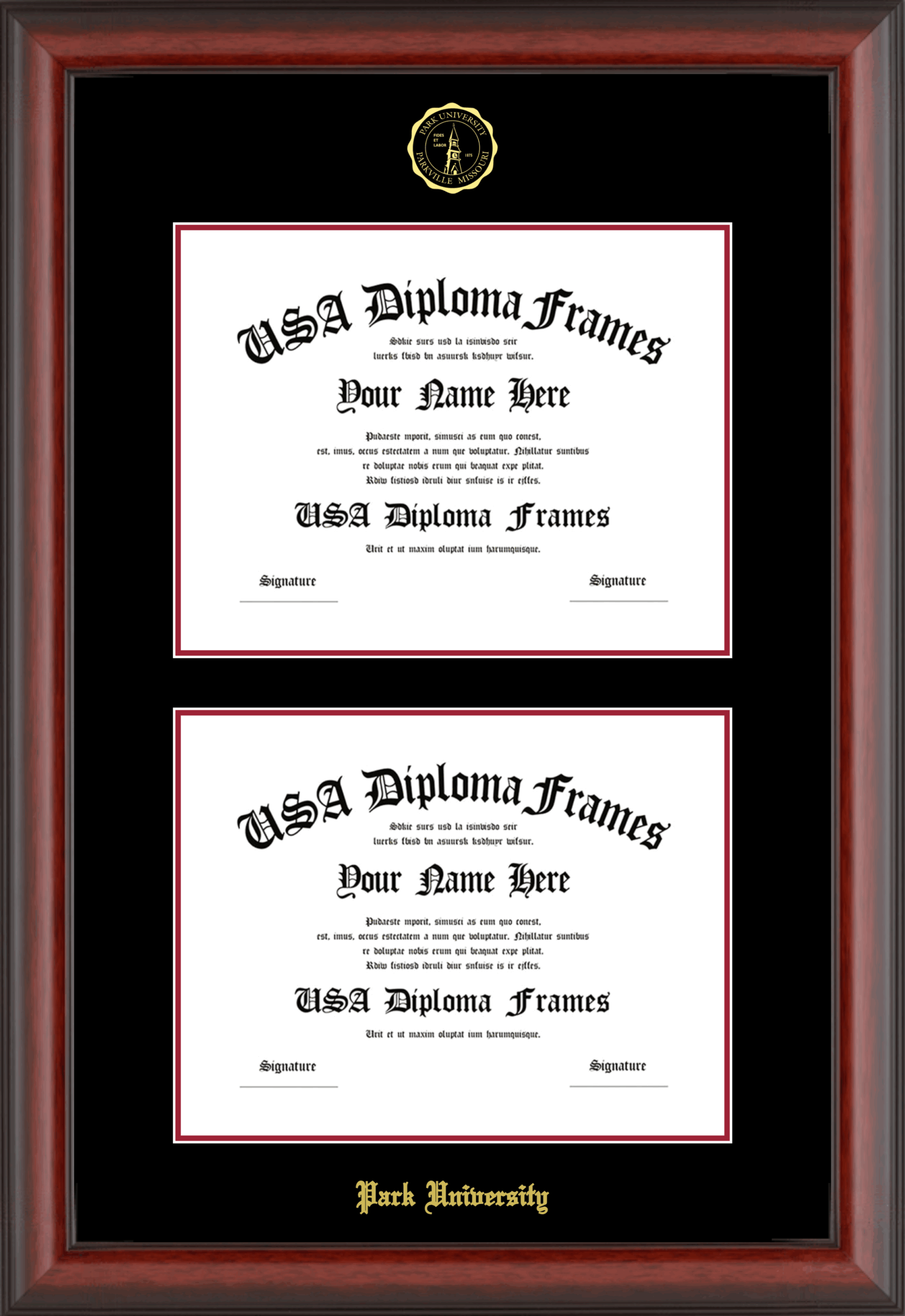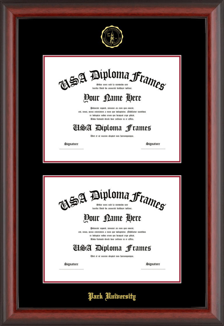 Park University Double Diploma Frame – Double Document – Cherry Mahogany Matte – Black and Crimson Mat