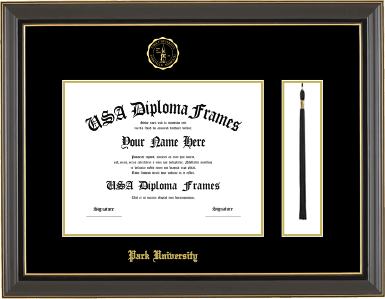 Park University Diploma Frame with Tassel – Black Gold Trim Glossy – Black and Gold Mat