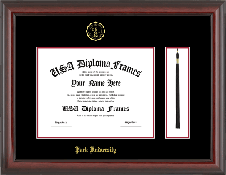 Park University Diploma Frame with Tassel – Cherry Mahogany Glossy – Black and Crimson Mat