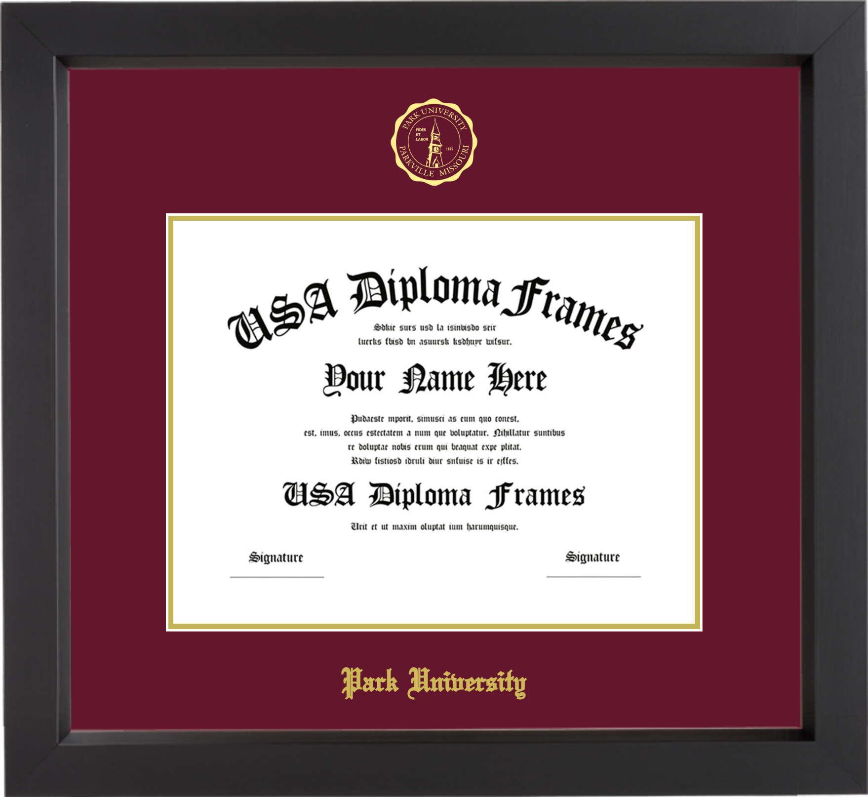 Park University – Single Horizontal Document ( Diploma ) – Black Matte – Maroon Mat – Gold Accent Mat – With Seal(University Seal Gold) – With Gold Embossing (Park University)