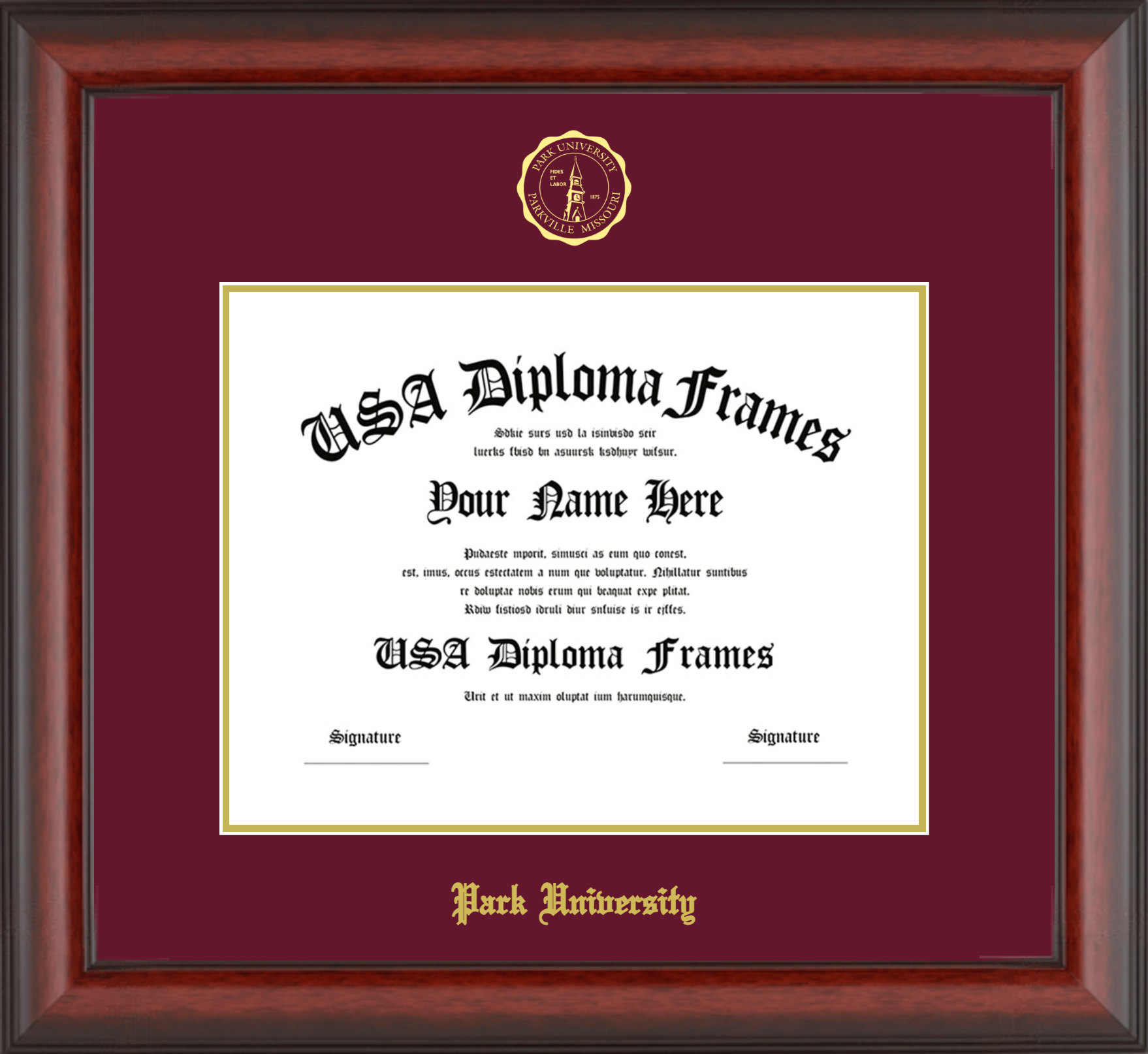 Park University – Single Horizontal Document ( Diploma ) – Cherry Mahogany Matte – Maroon Mat – Gold Accent Mat – With Seal(University Seal Gold) – With Gold Embossing (Park University)