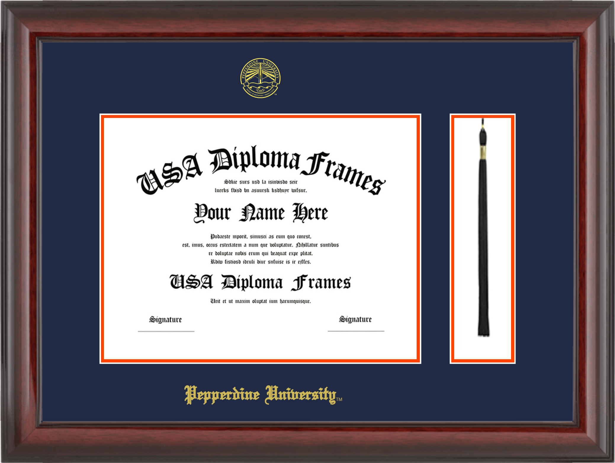 Pepperdine University Diploma Frame with Tassel – 8.5×11 Bachelors/Masters – Cherry Mahogany Glossy – Navy and Orange Mat
