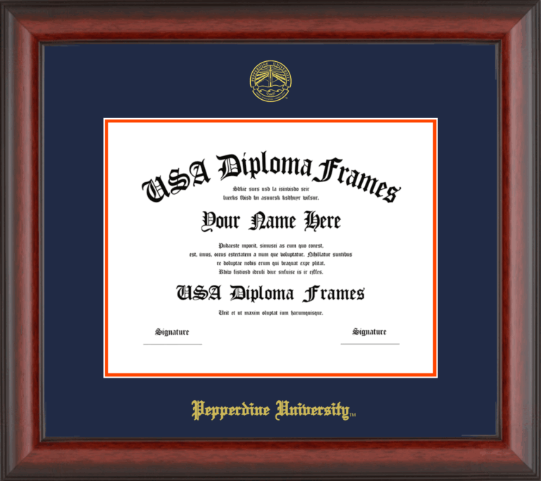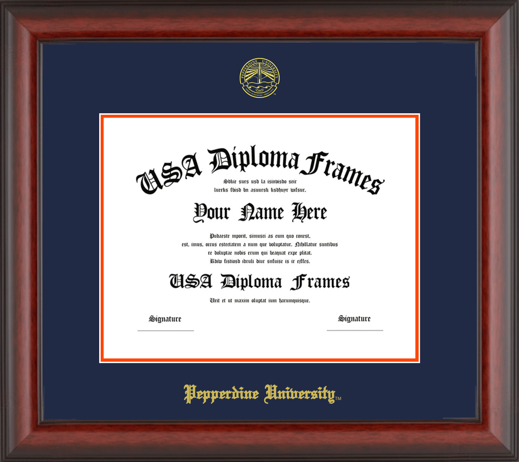 Pepperdine University Diploma Frame – 8.5×11 Bachelors/Masters – Cherry Mahogany Matte – Navy and Orange Mat