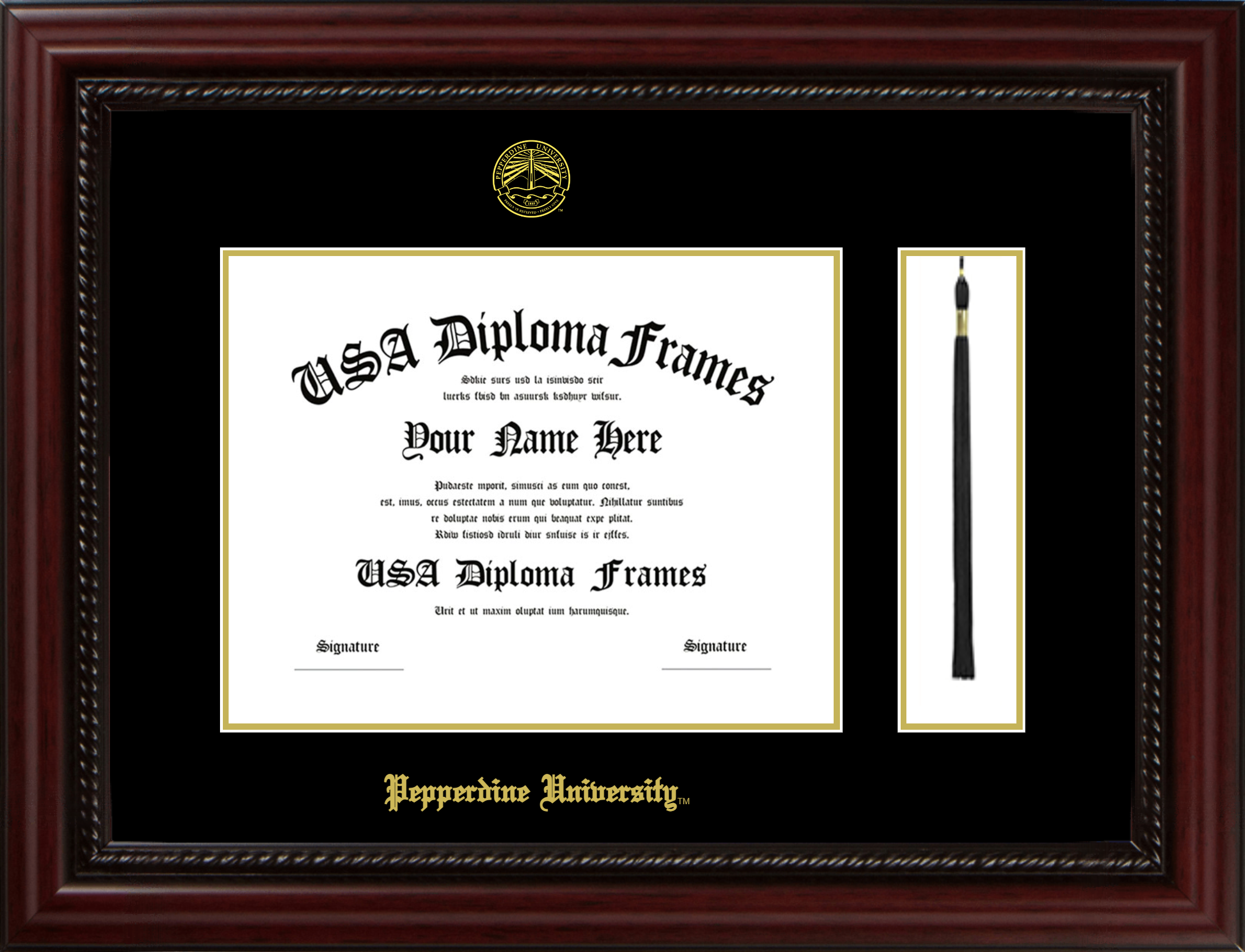 Pepperdine University Diploma Frame with Tassel – 8.5×11 Bachelors/Masters – Executive Cherry Rope – Black and Gold Mat