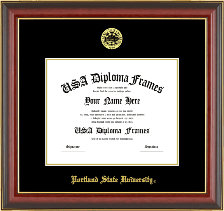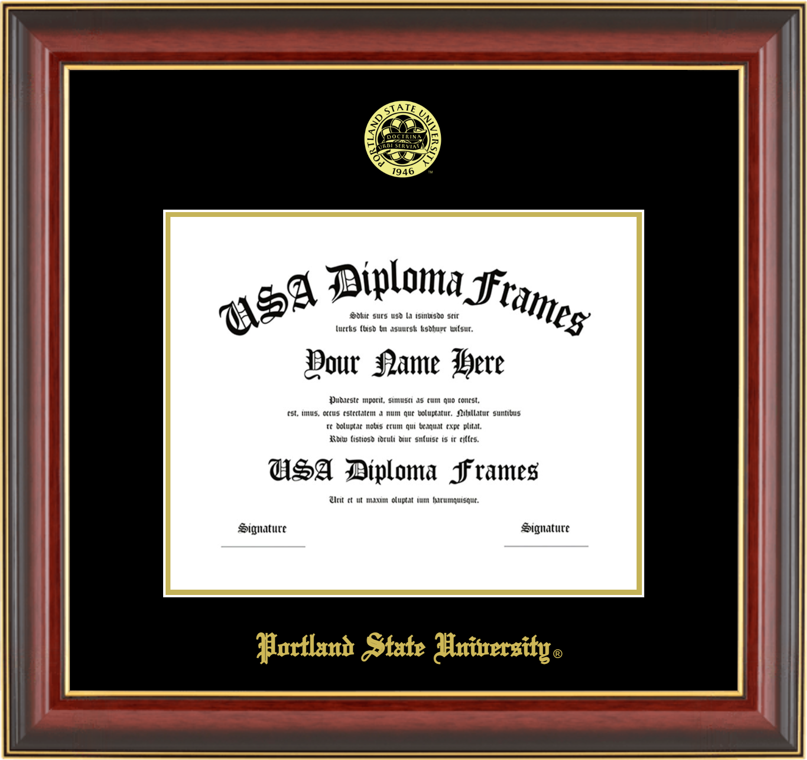 Portland State University Diploma Frame – Cherry Mahogany Gold Trim Glossy – Black and Gold Mat