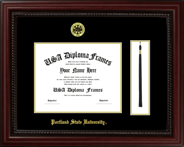 Portland State University Diploma Frame with Tassel – Executive Cherry Rope – Black and Gold Mat