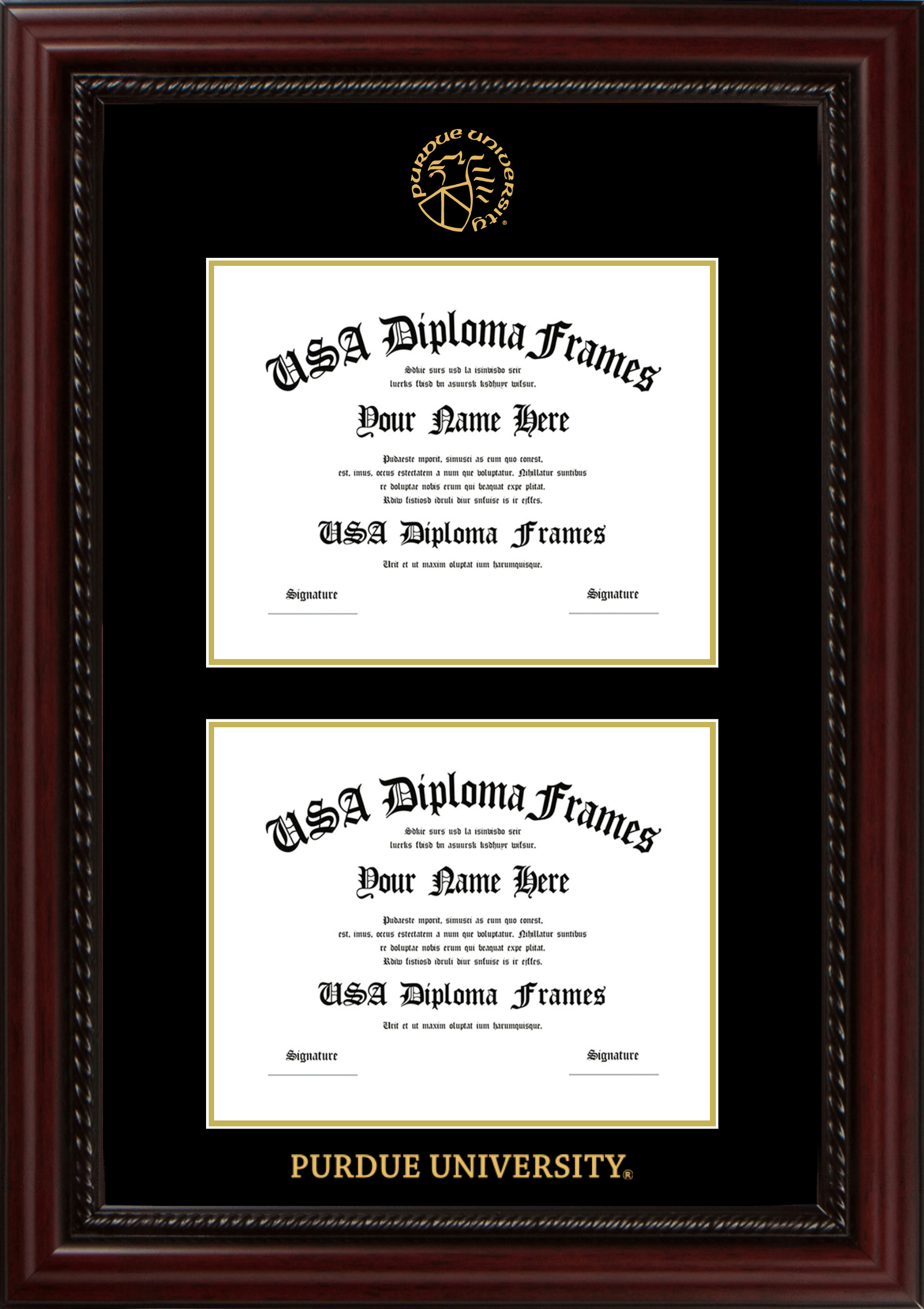 Purdue University Double Diploma Frame – Executive Cherry Rope – Black and Gold Mat – Bachelors 7.625 x 9.625