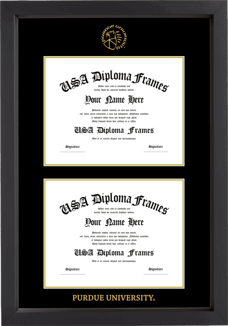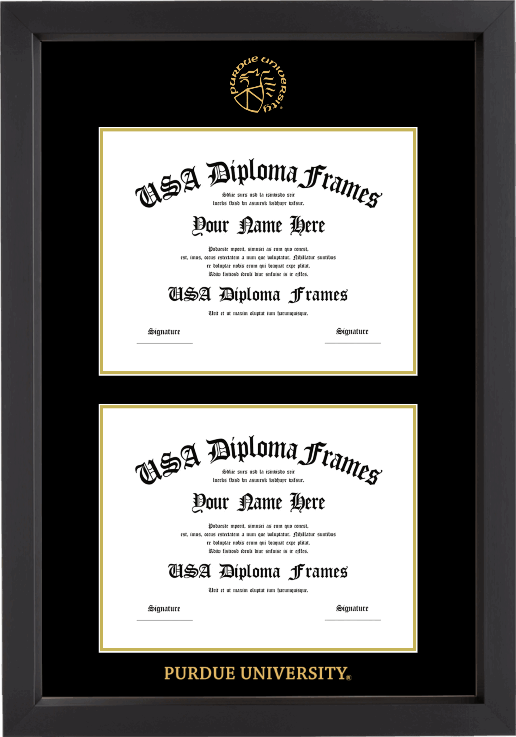 Purdue University Double Diploma Frame – Masters/PhD/Global 8.5 x 11 – Black Matte – Black and Gold Mat