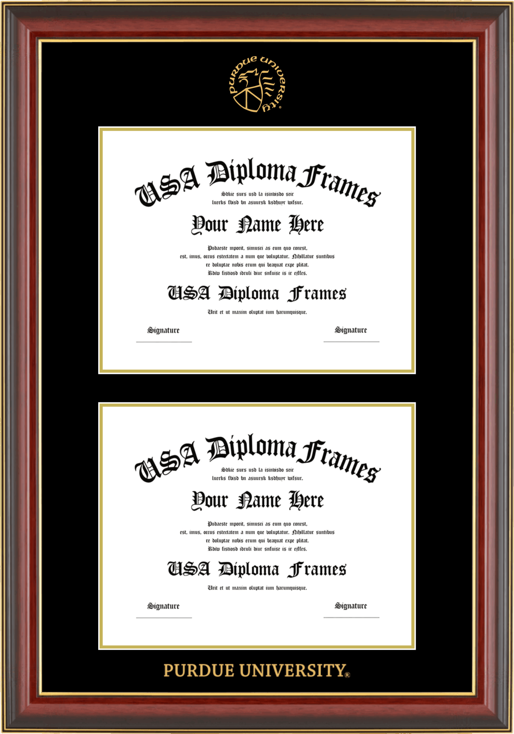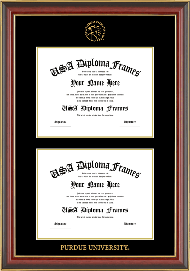 Purdue University Double Diploma Frame – Masters/PhD/Global 8.5 x 11 – Cherry Mahogany Gold Trim Glossy – Black and Gold Mat