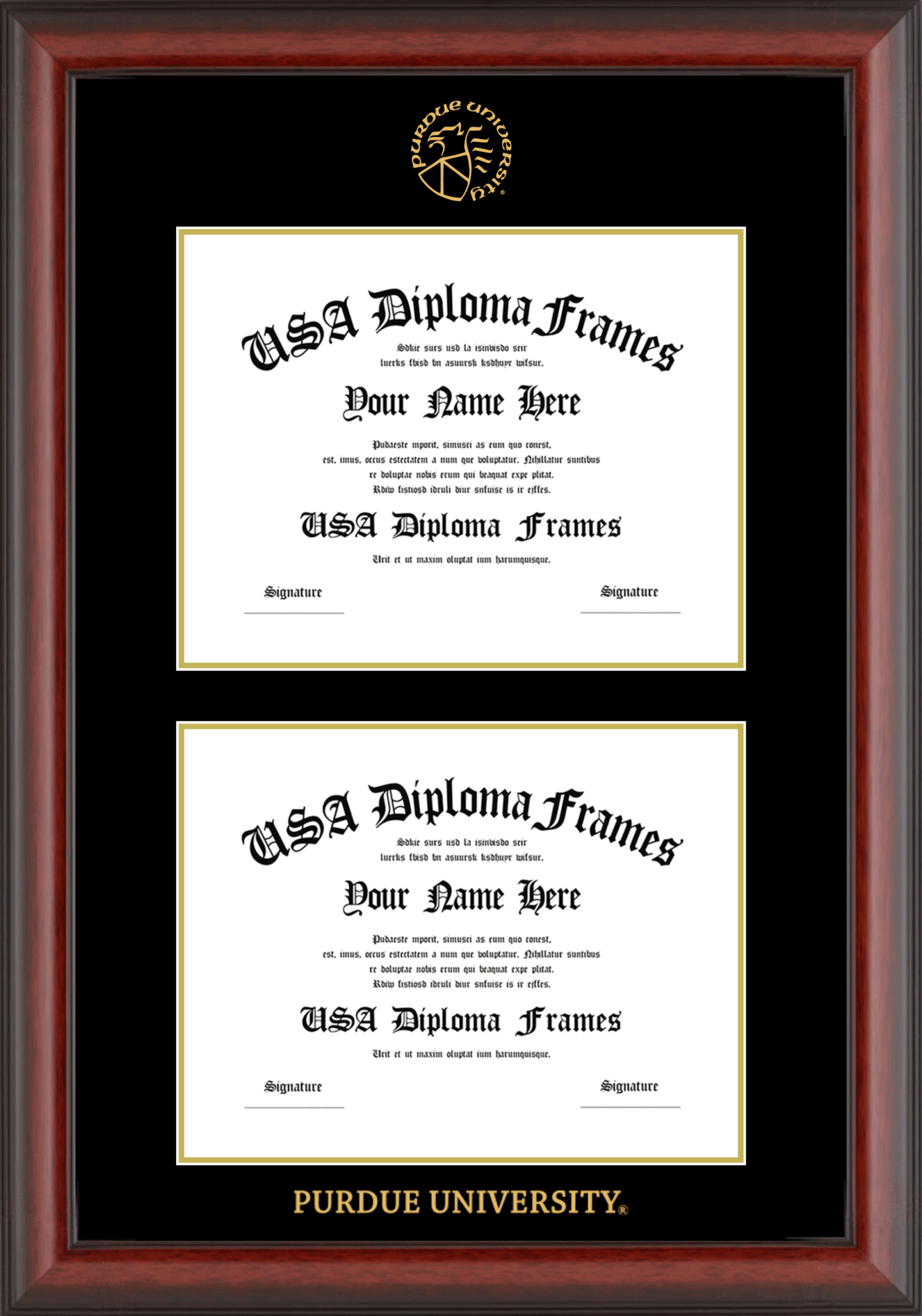 Want to explore more styles? Browse our full range of diploma frame layouts, or visit the Purdue University to view options available for your school. Looking for a fully personalized design? Try our custom Frame Builder and create a frame that’s uniquely yours.