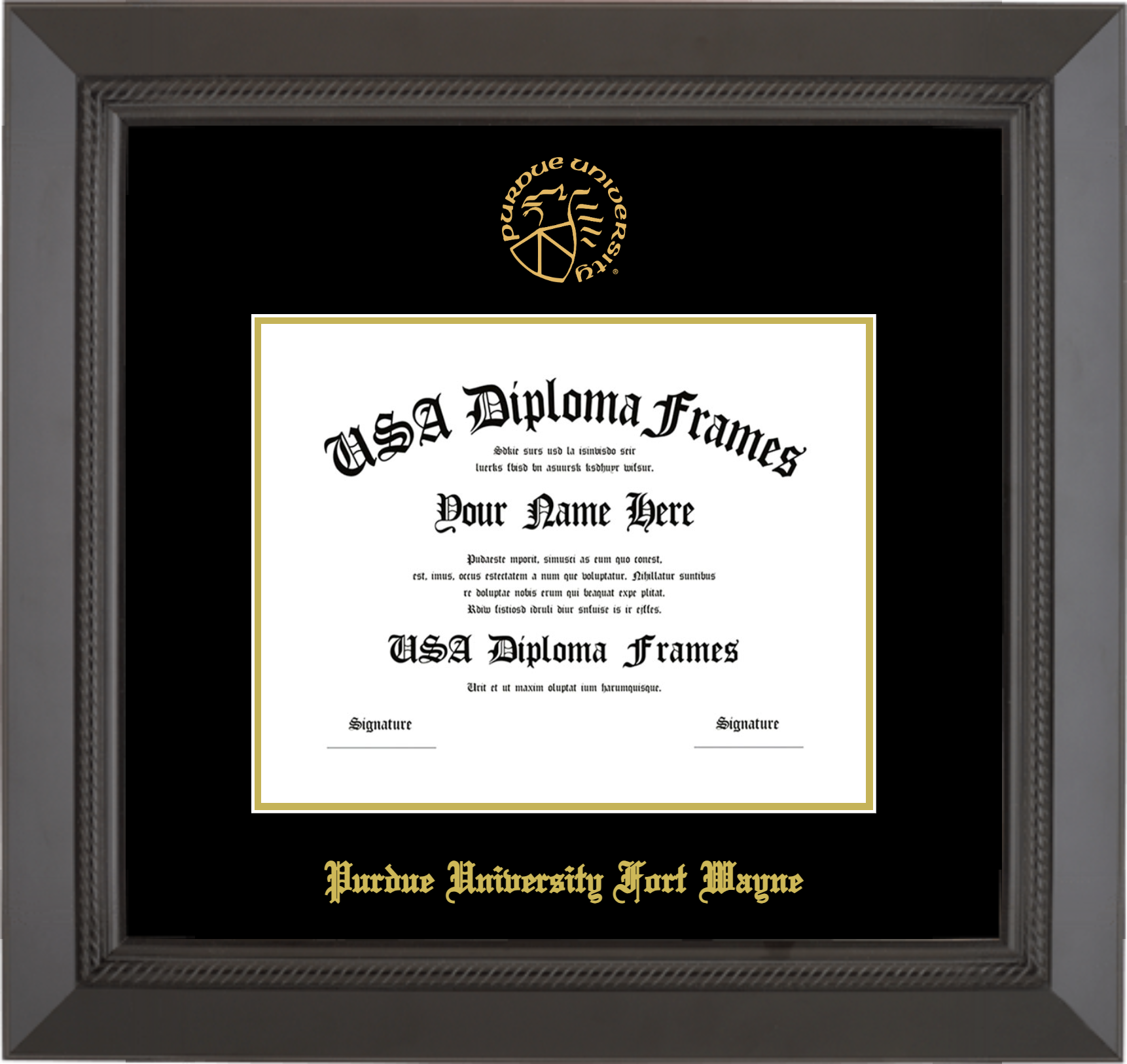 Purdue University Fort Wayne Diploma Frame with Tassel – Black Rope – Black and Gold Mat