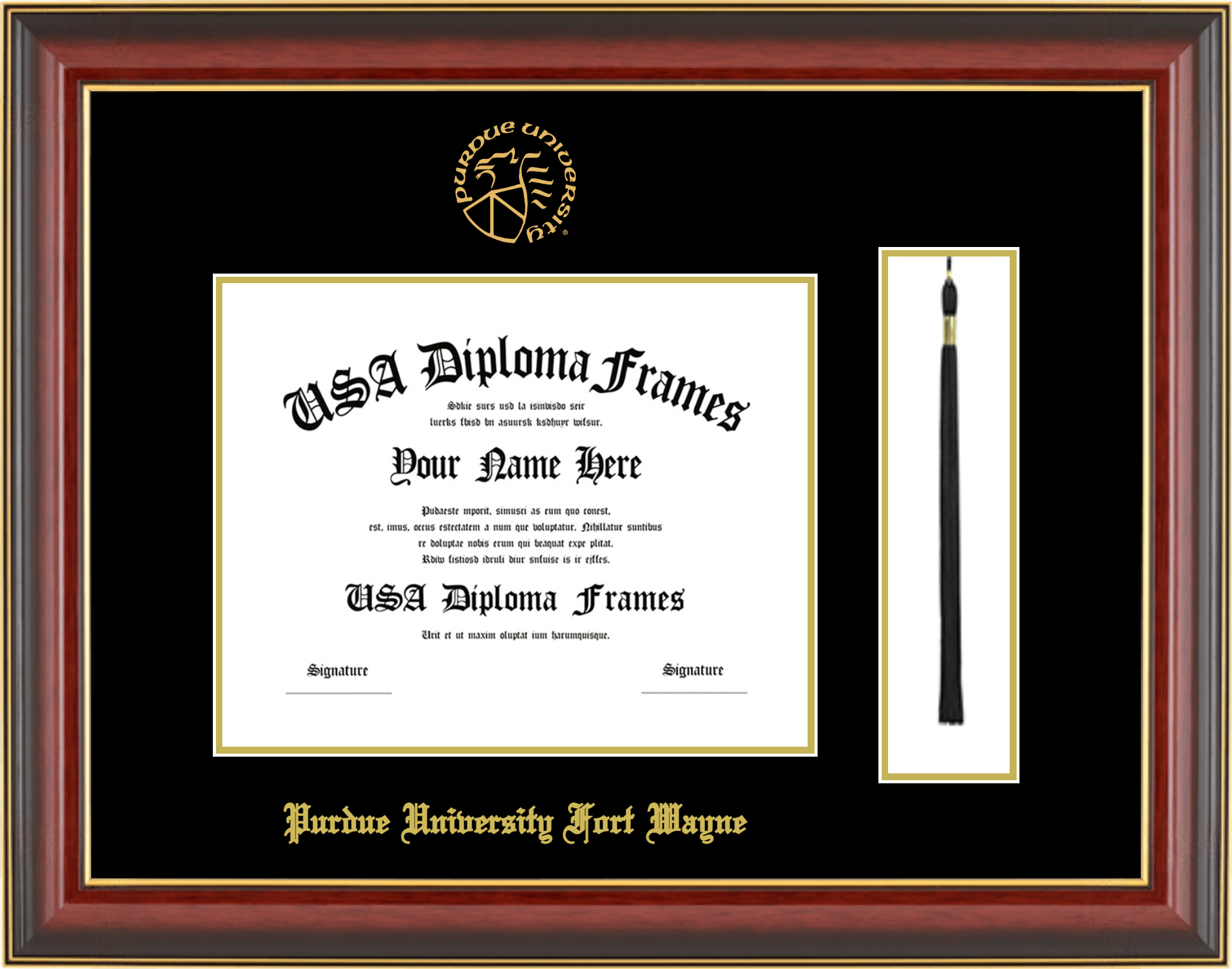 Purdue University Fort Wayne Diploma Frame with Tassel – Cherry Mahogany Gold Trim Glossy – Black and Gold Mat