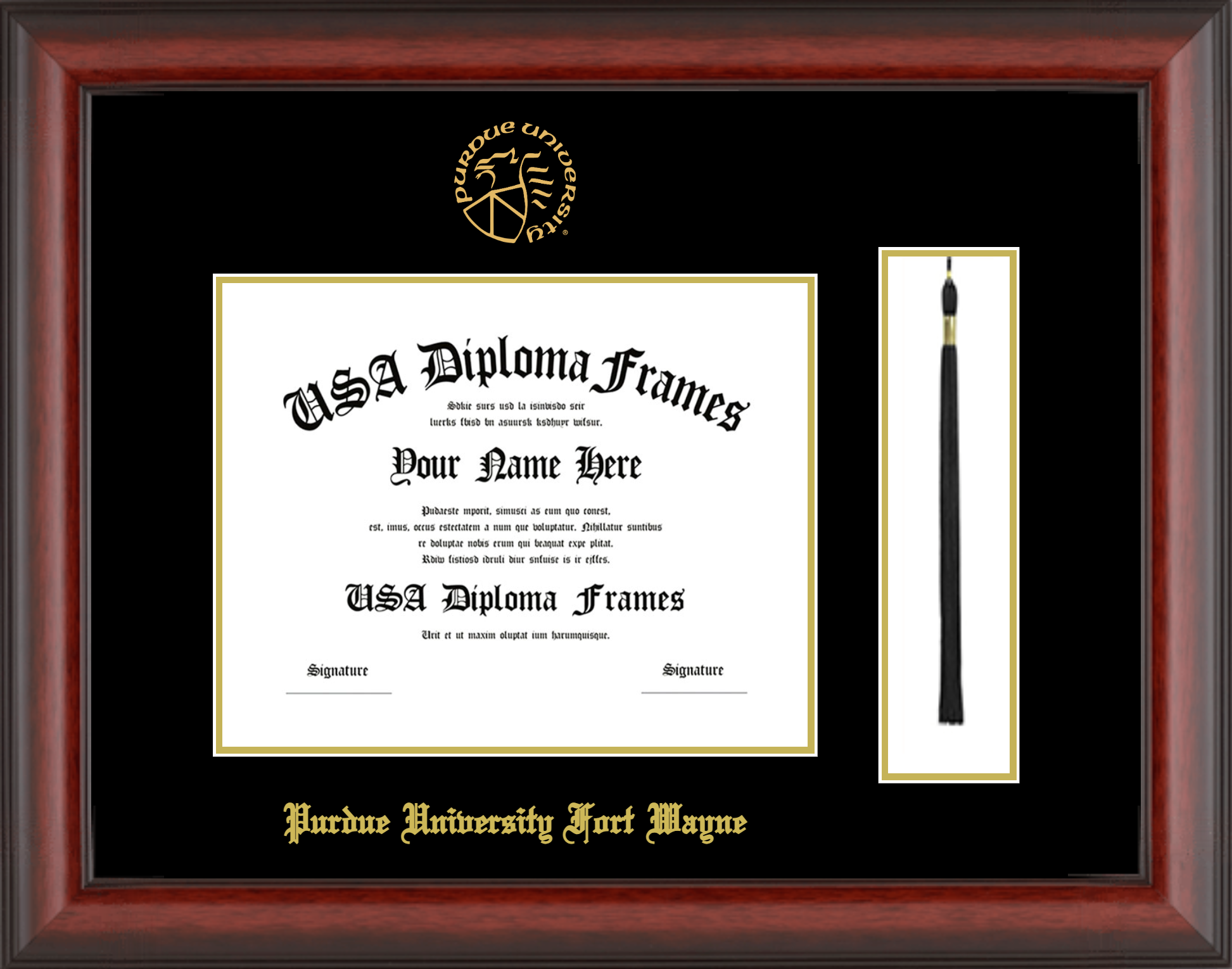 Purdue University Fort Wayne Diploma Frame with Tassel – Cherry Mahogany Matte – Black and Gold Mat