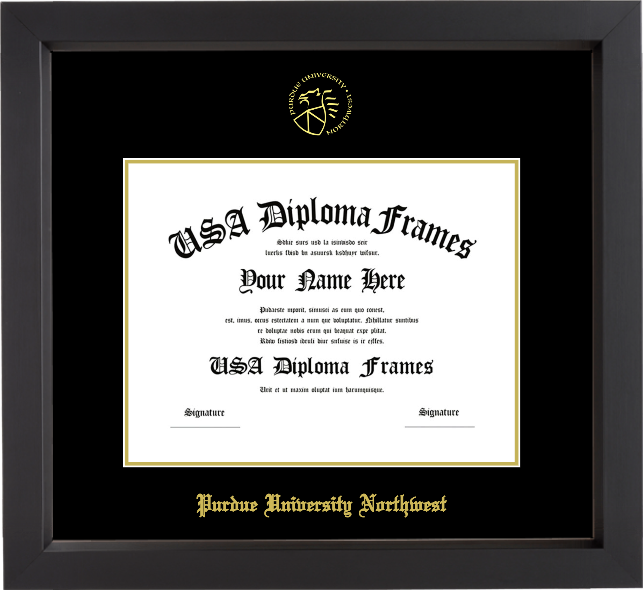 Purdue University Northwest Diploma Frame – Black Matte – Black and Gold Mat