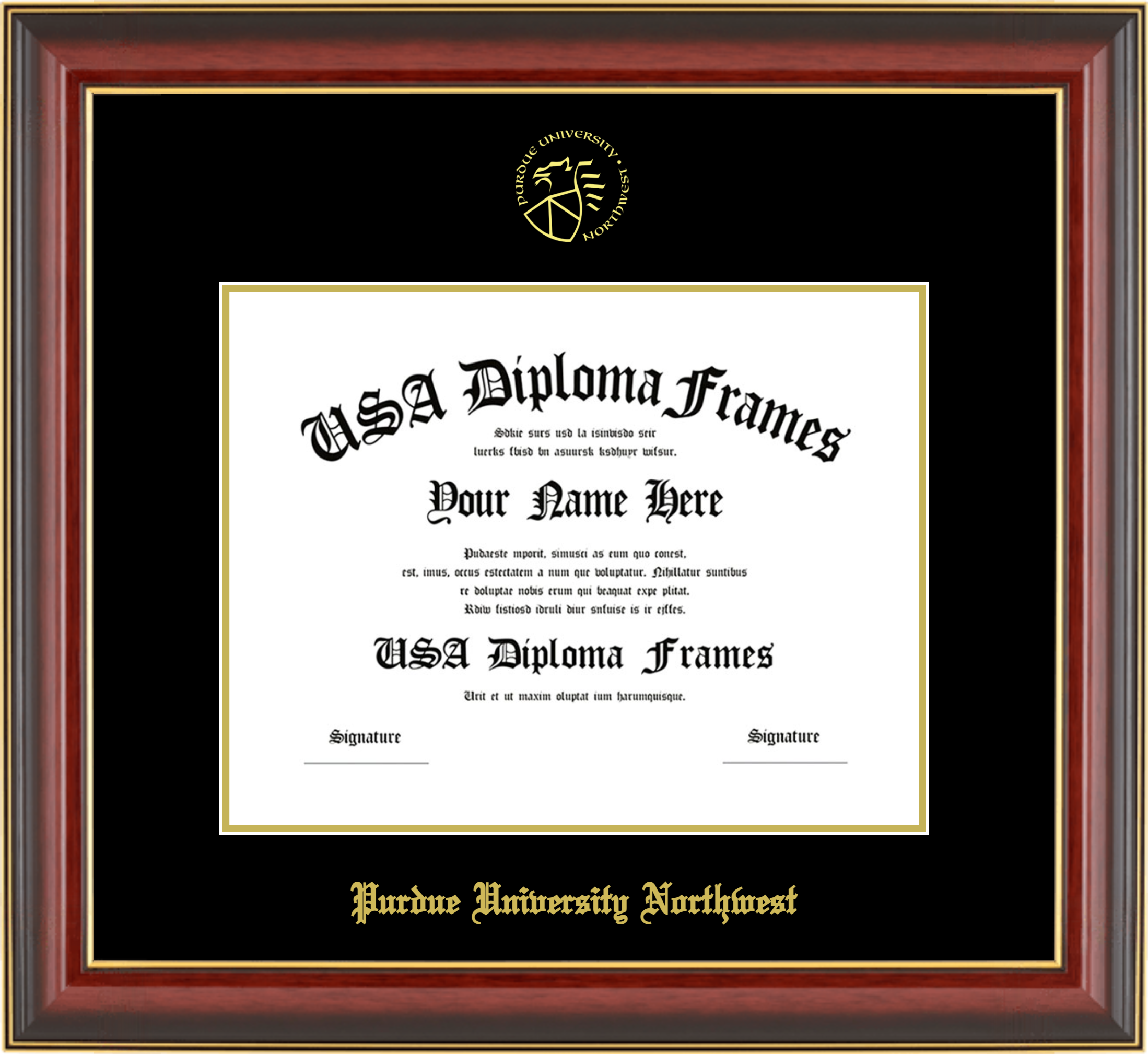 Want to explore more styles? Browse our full range of diploma frame layouts, or visit the Purdue University Northwest to view options available for your school. Looking for a fully personalized design? Try our custom Frame Builder and create a frame that’s uniquely yours.