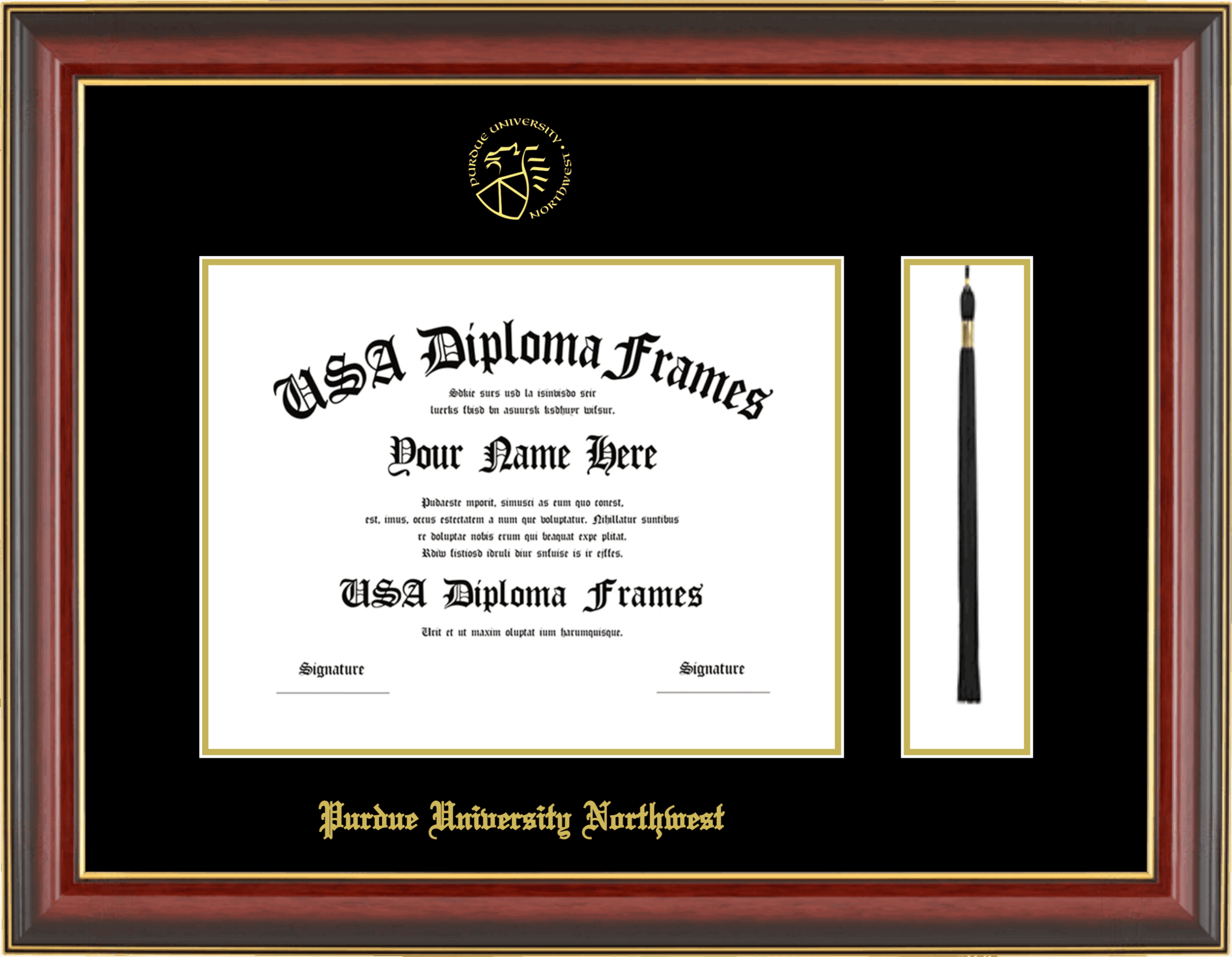 Purdue University Northwest Diploma Frame with Tassel – Cherry Mahogany Gold Trim Glossy – Black and Gold Mat