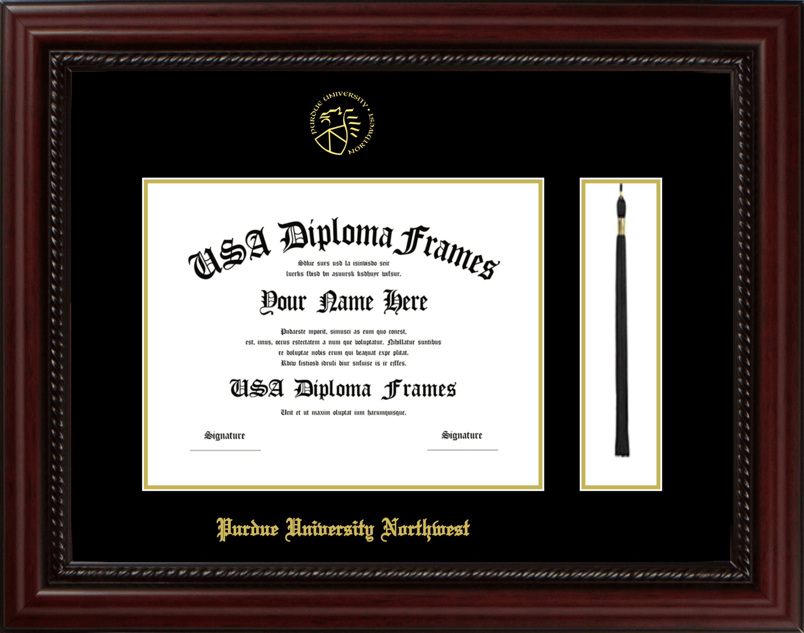 Purdue University Northwest Diploma Frame with Tassel – Executive Cherry Rope – Black and Gold Mat