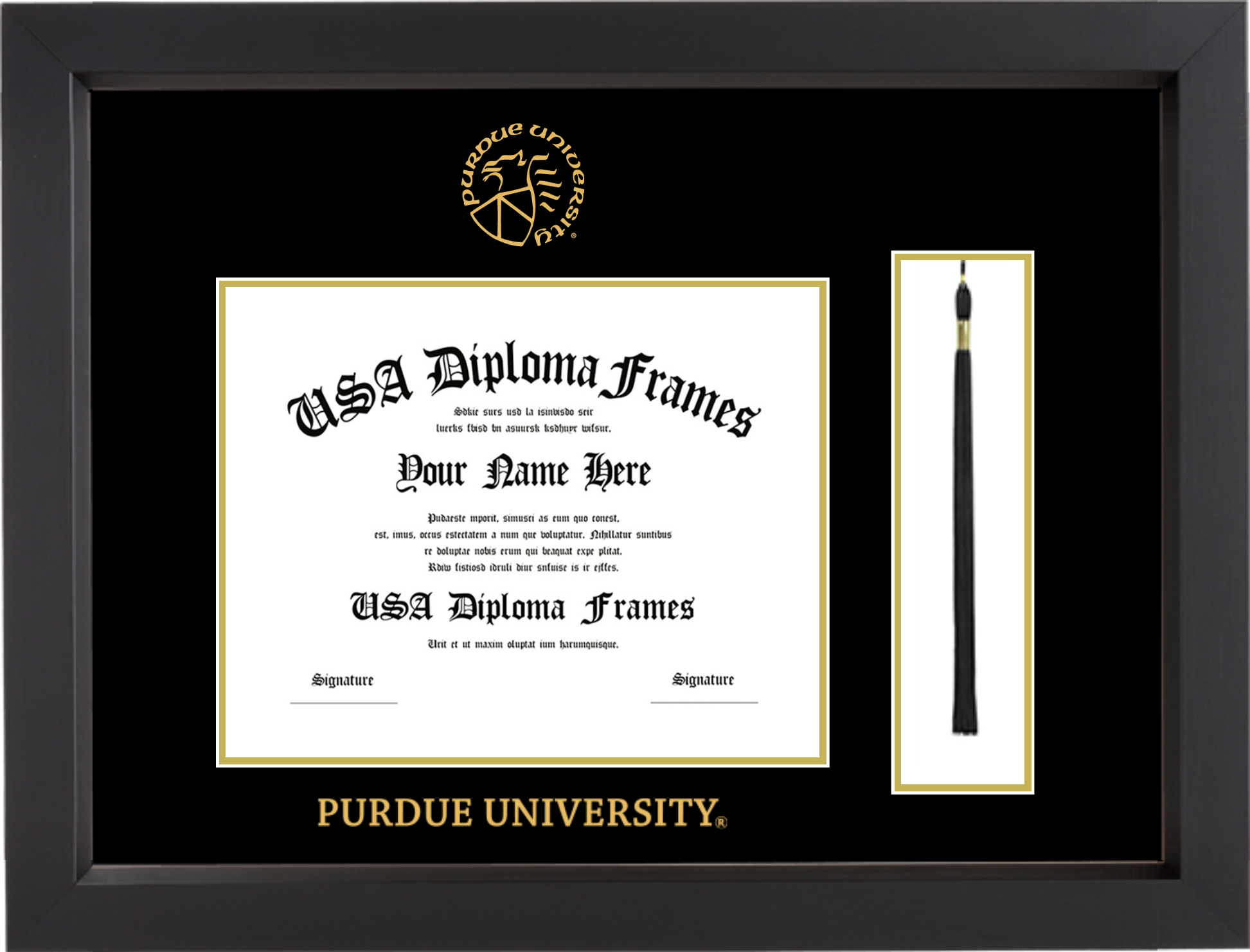 Purdue University Diploma Frame with Tassel – Black Matte – Black and Gold Mat – Bachelors 7.625 x 9.625