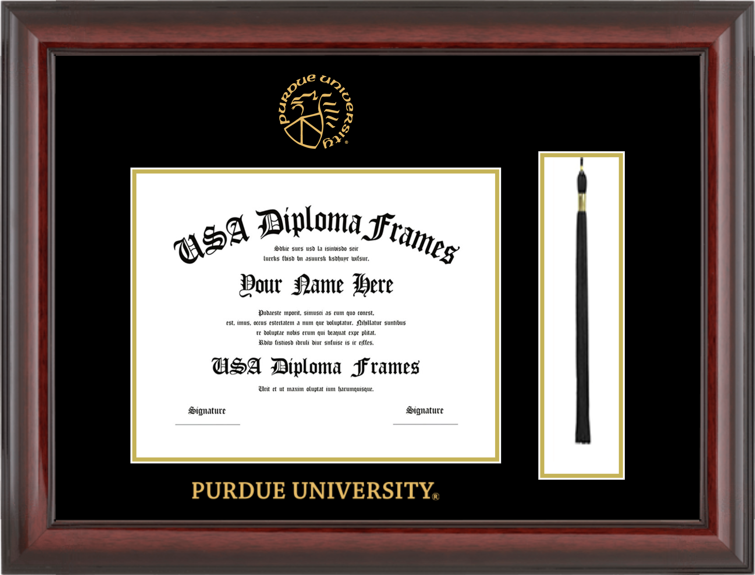 Purdue University Diploma Frame with Tassel – Cherry Mahogany Glossy – Black and Gold Mat – Bachelors 7.625 x 9.625