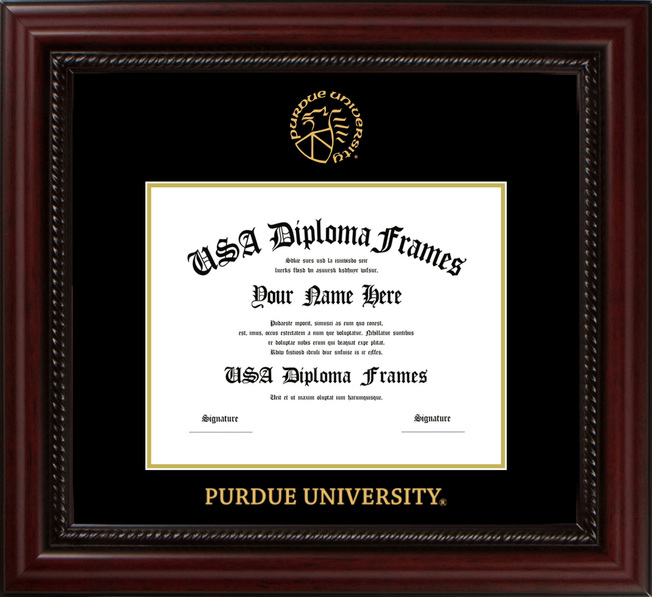 Purdue University Diploma Frame – Executive Cherry Rope – Black and Gold Mat – Bachelors 7.625 x 9.625