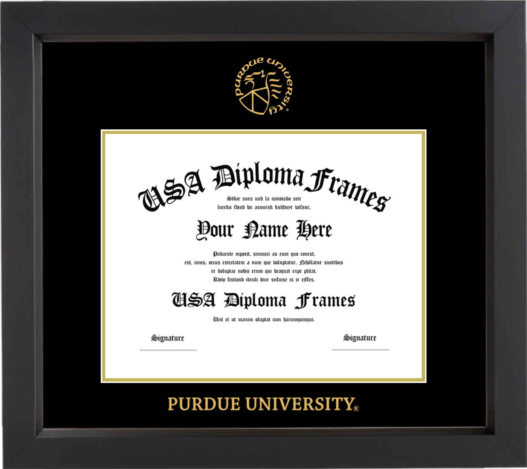 Purdue University Diploma Frame – Masters/PhD/Global 8.5 x 11 – Black Matte – Black and Gold Mat