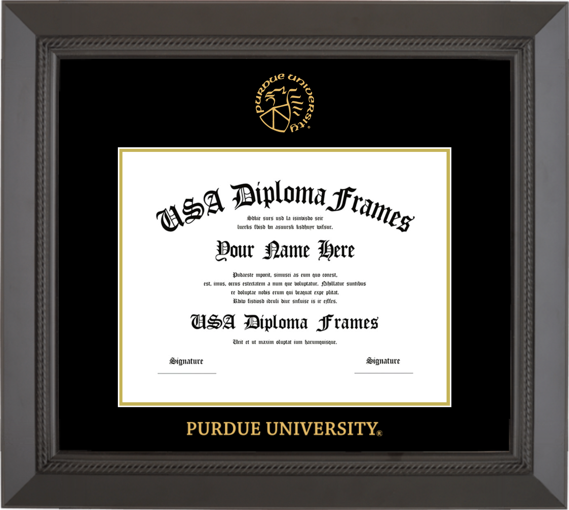 Purdue University Diploma Frame – Masters/PhD/Global 8.5 x 11 – Black Rope – Black and Gold Mat