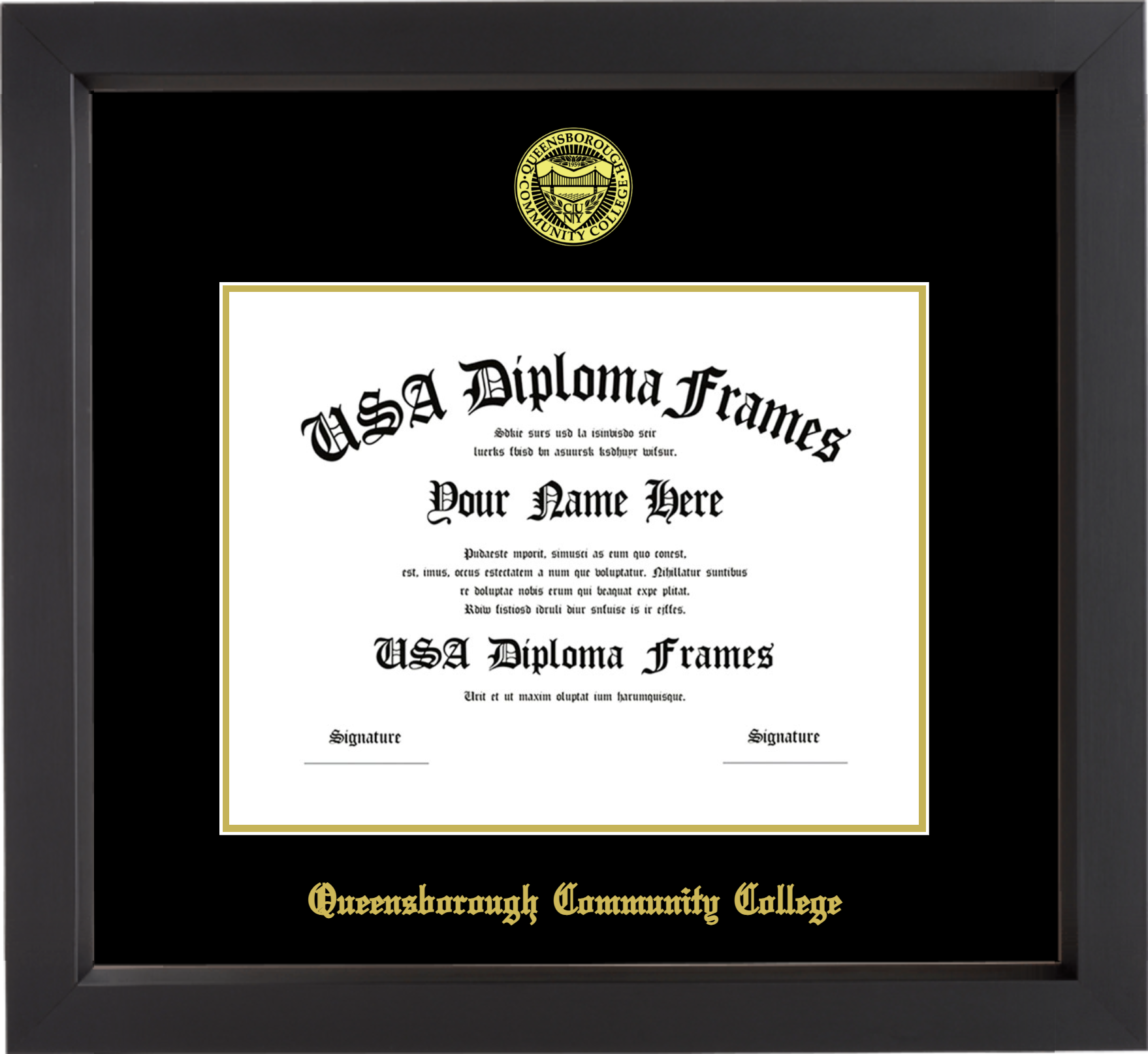 Queensborough Community College Diploma Frame – Black Matte – Black and Gold Mat