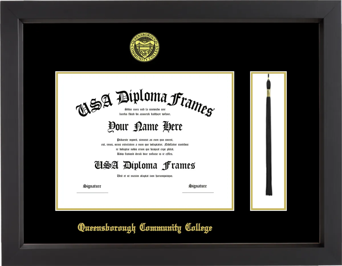 Queensborough Community College Diploma Frame with Tassel – Black Matte – Black and Gold Mat