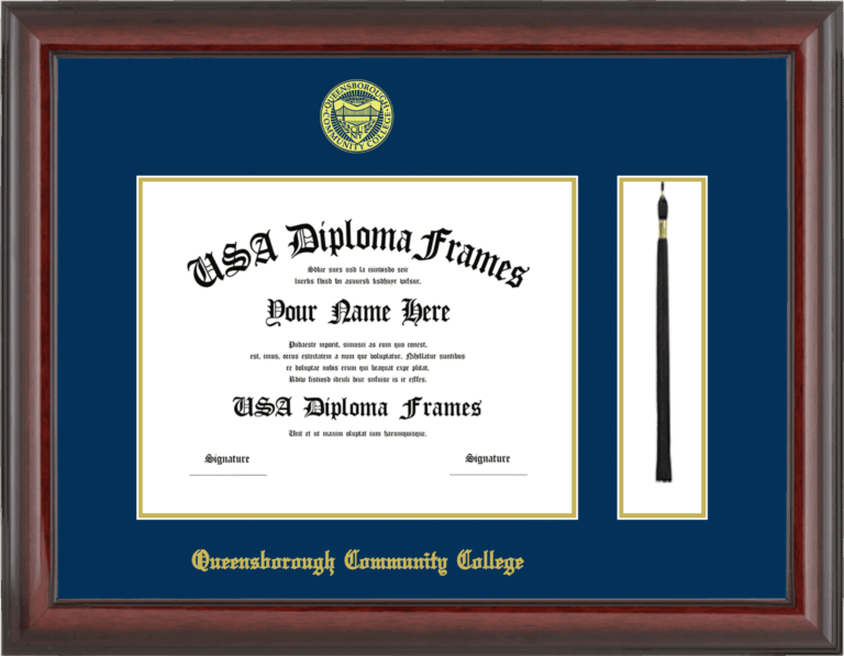 Queensborough Community College Diploma Frame with Tassel – Cherry Mahogany Glossy – Navy and Gold Mat