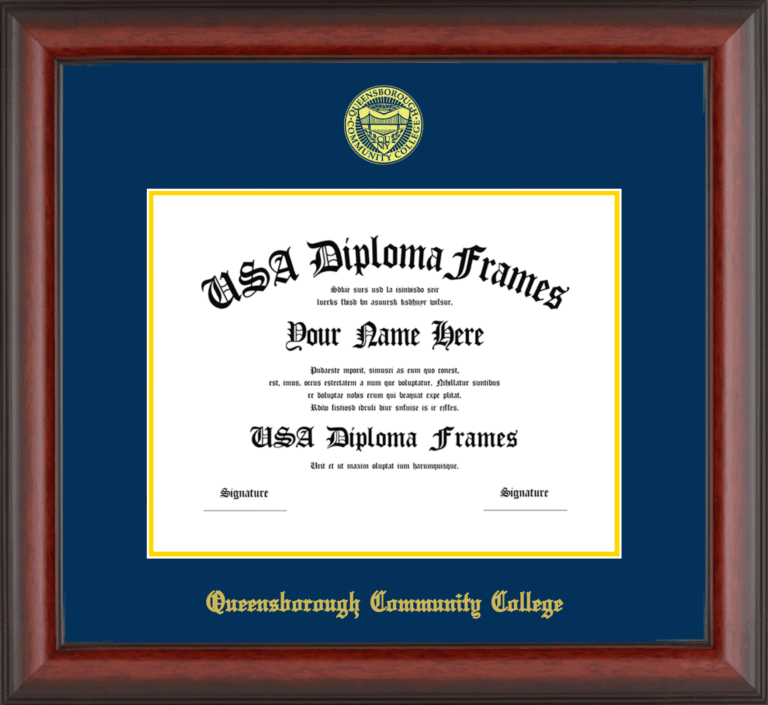 Want to explore more styles? Browse our full range of diploma frame layouts, or visit the Queensborough Community College of the City University of New York to view options available for your school. Looking for a fully personalized design? Try our custom Frame Builder and create a frame that’s uniquely yours.