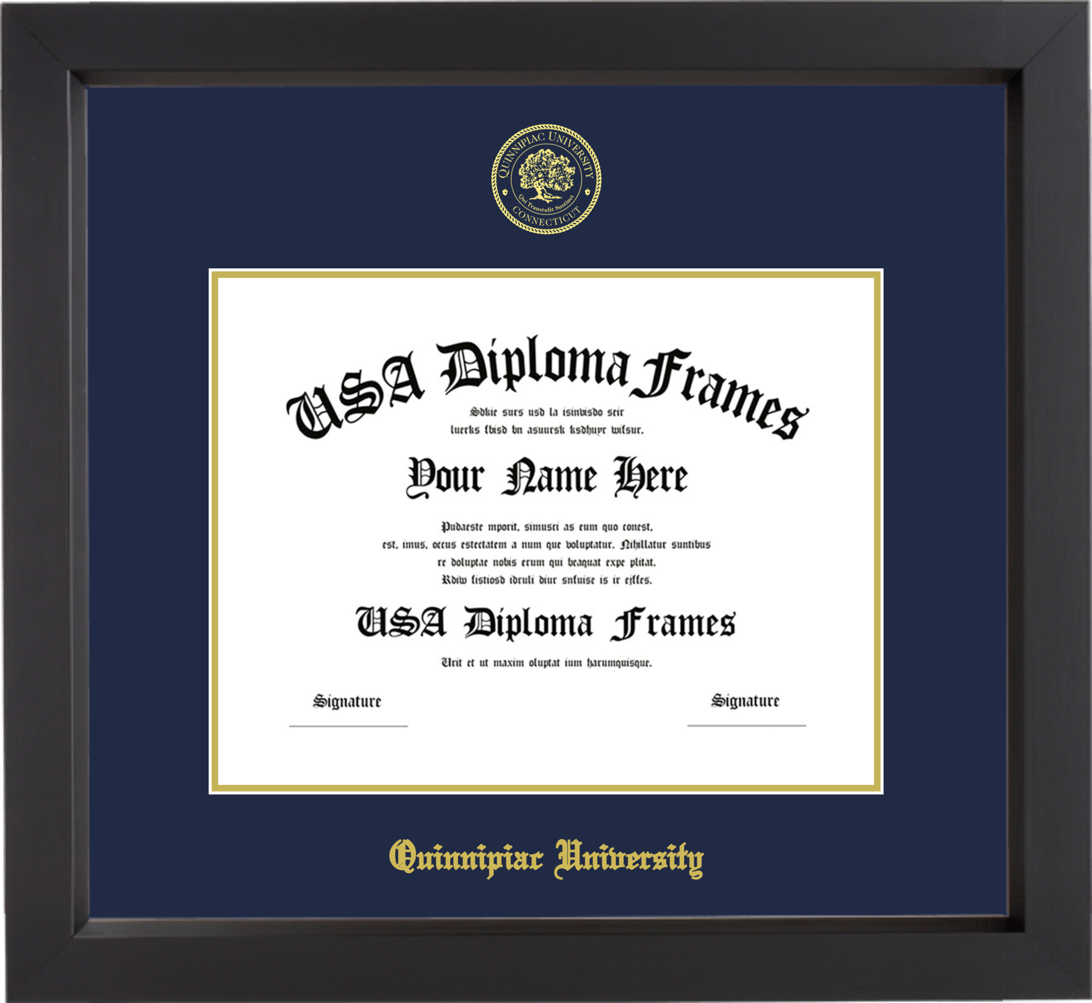 Quinnipiac University – Single Horizontal Document ( Bachelors ) – Black Matte – Navy Mat – Gold Accent Mat – With Seal(University Seal Gold) – With Gold Embossing (Quinnipiac University)