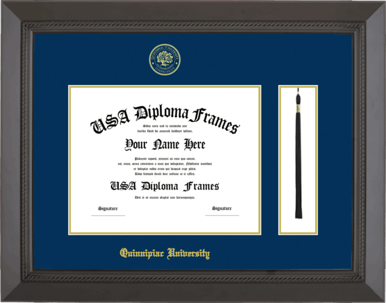 Quinnipiac University Diploma Frame with Tassel – Black Rope – Navy and Gold Mat