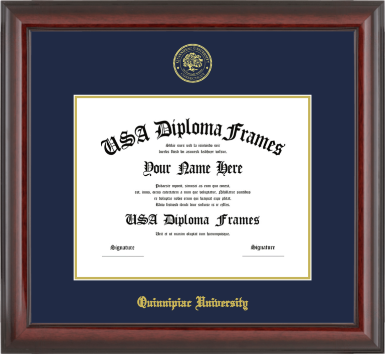 Want to explore more styles? Browse our full range of diploma frame layouts, or visit the Quinnipiac University to view options available for your school. Looking for a fully personalized design? Try our custom Frame Builder and create a frame that’s uniquely yours.