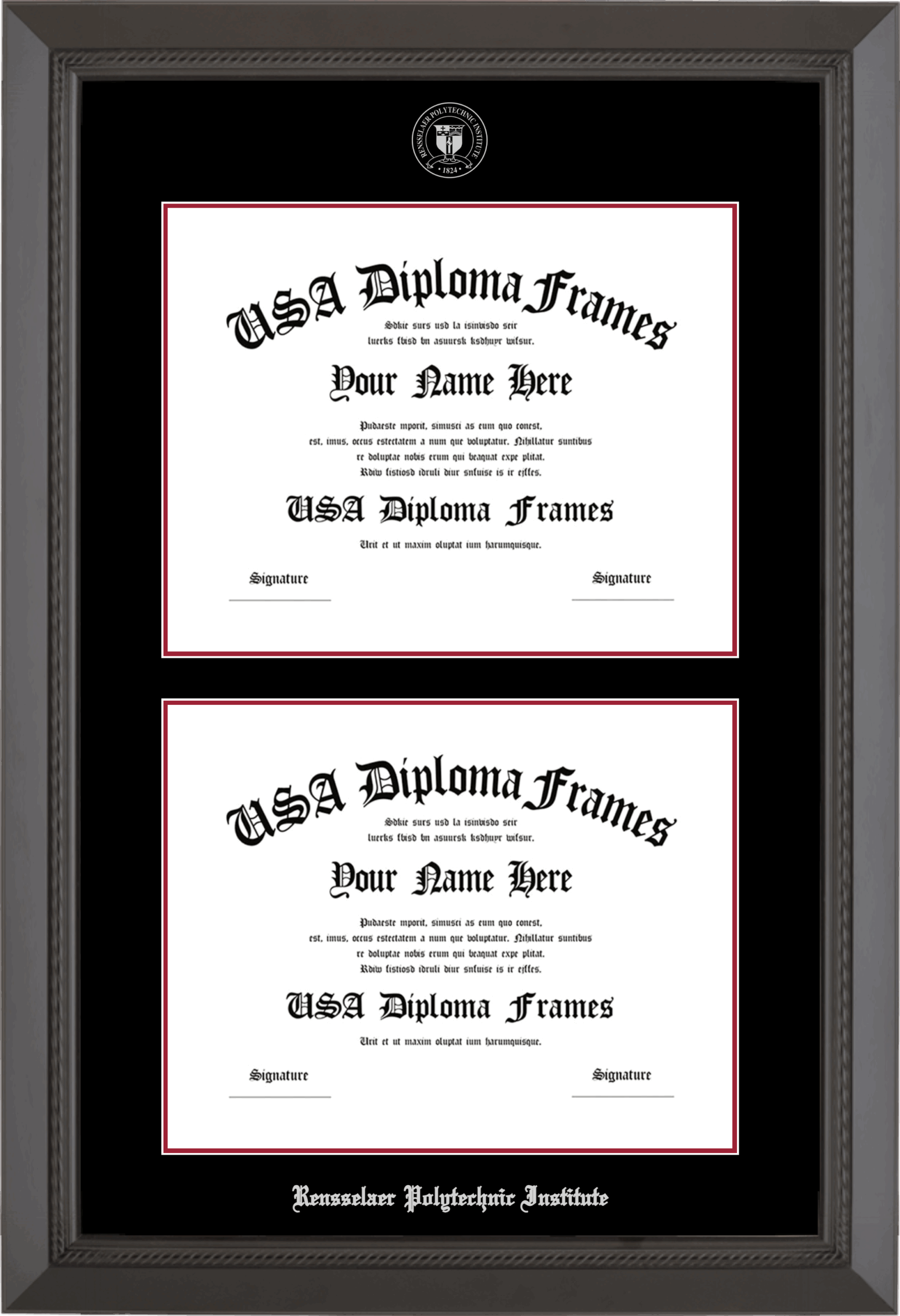 Rensselaer Polytechnic Institute Double Diploma Frame – Double Document – Black Rope – Black and Crimson Mat – Silver Seal