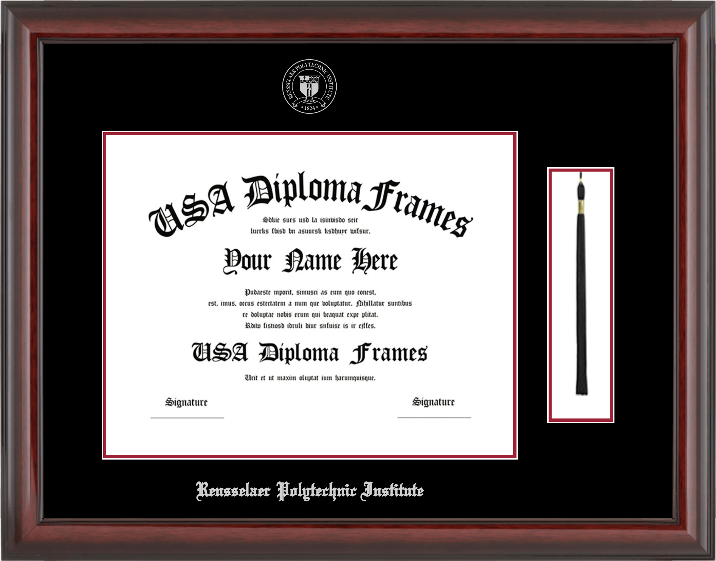 Rensselaer Polytechnic Institute Diploma Frame with Tassel – Cherry Mahogany Glossy – Black and Crimson Mat – Silver Seal