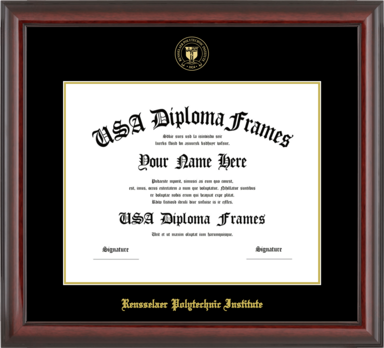 Rensselaer Polytechnic Institute Diploma Frame – Cherry Mahogany Glossy – Black and Gold Mat