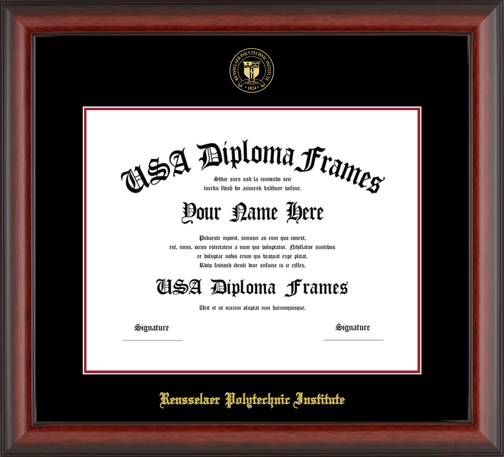 Rensselaer Polytechnic Institute Diploma Frame – Cherry Mahogany Matte – Black and Crimson Mat