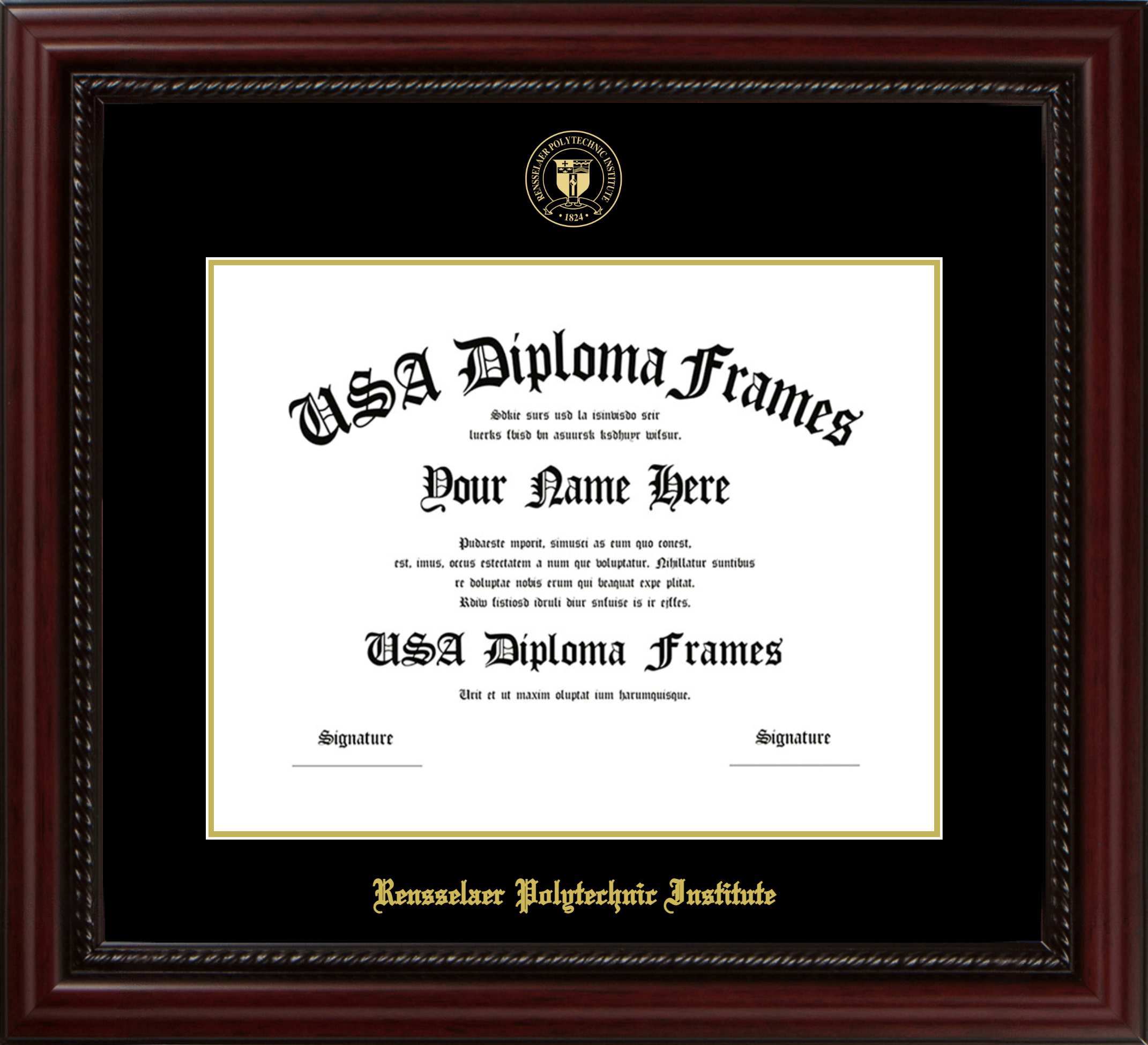 Rensselaer Polytechnic Institute Diploma Frame – Executive Cherry Rope – Black and Gold Mat