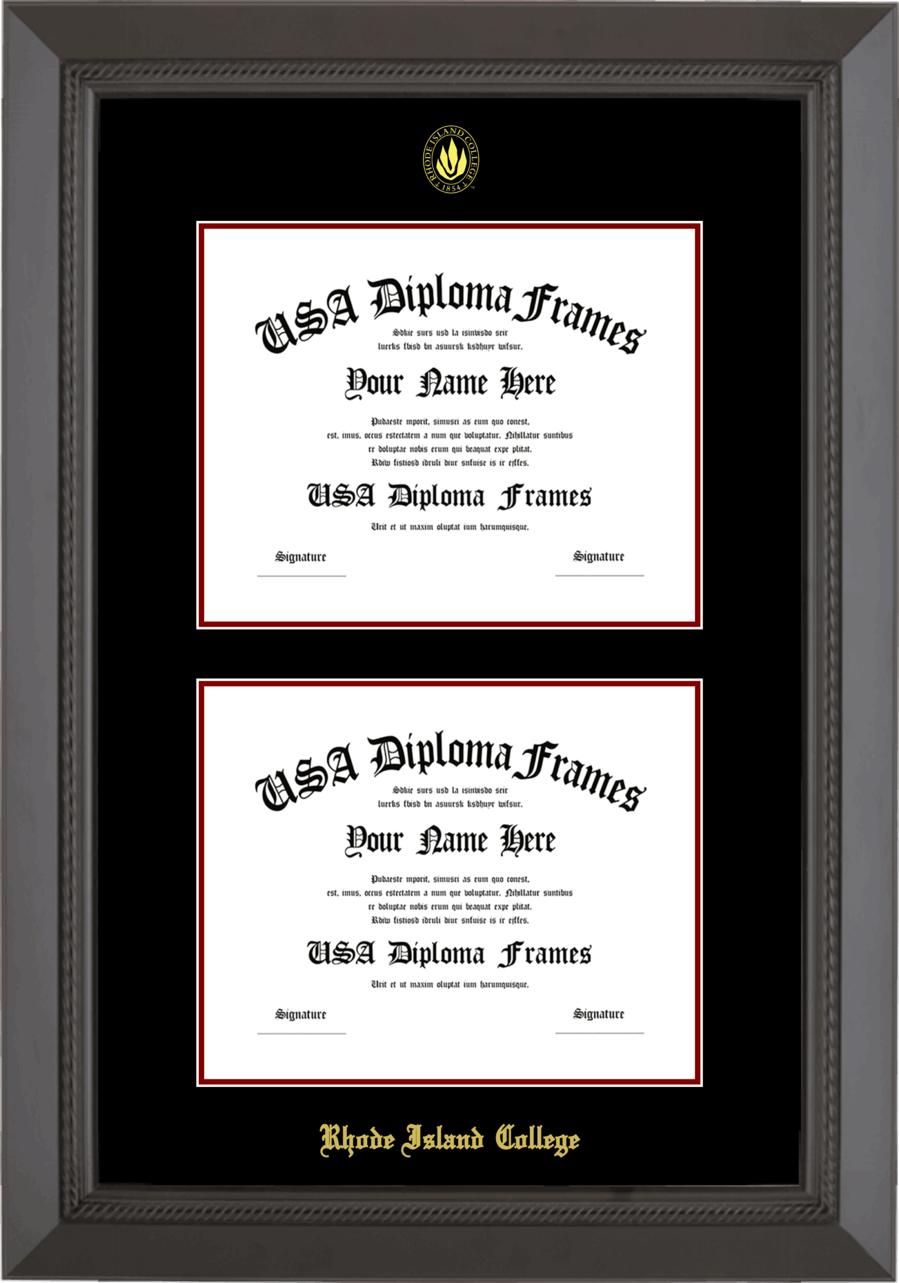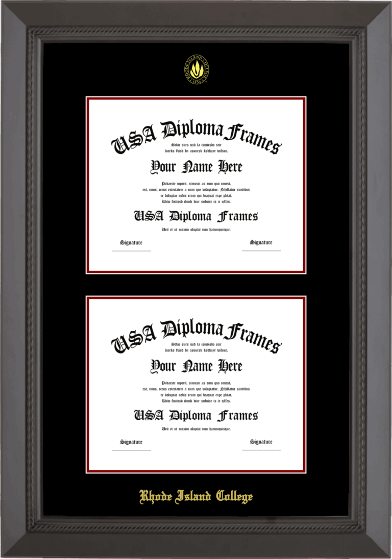 Rhode Island College Double Diploma Frame – Double Document – Black Rope – Black and Maroon Mat
