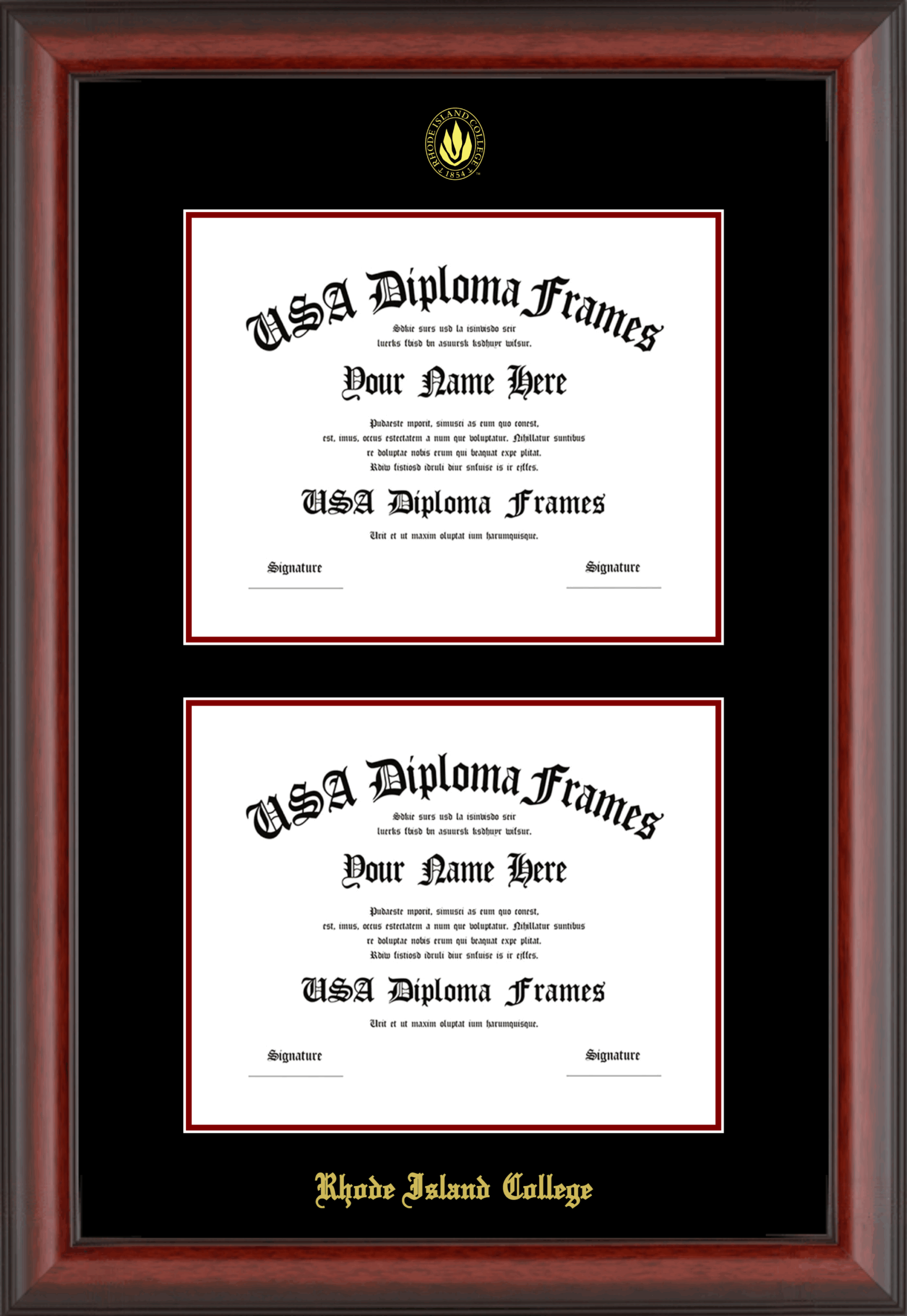 Rhode Island College Double Diploma Frame – Double Document – Cherry Mahogany Matte – Black and Maroon Mat