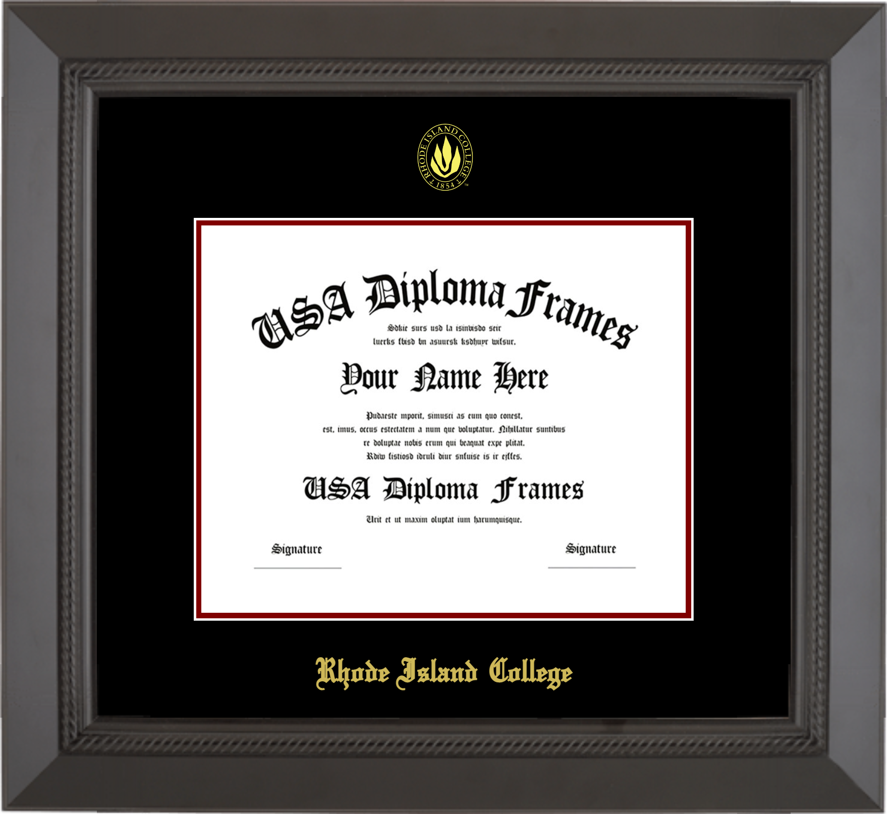 Rhode Island College – Single Horizontal Document ( Diploma ) – Black Rope – Black Mat – Maroon Accent Mat – With Seal(University Seal Gold) – With Gold Embossing (Rhode Island College)