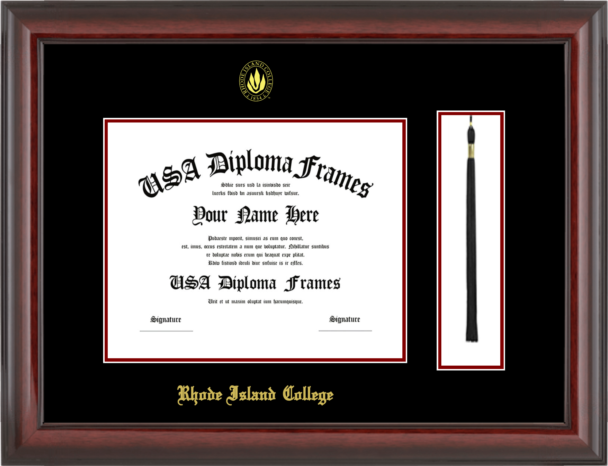Rhode Island College – Single Horizontal Document ( Diploma ) – Cherry Mahogany Glossy – Black Mat – Maroon Accent Mat – With Tassel(Default) – With Seal(University Seal Gold) – With Gold Embossing (Rhode Island College)
