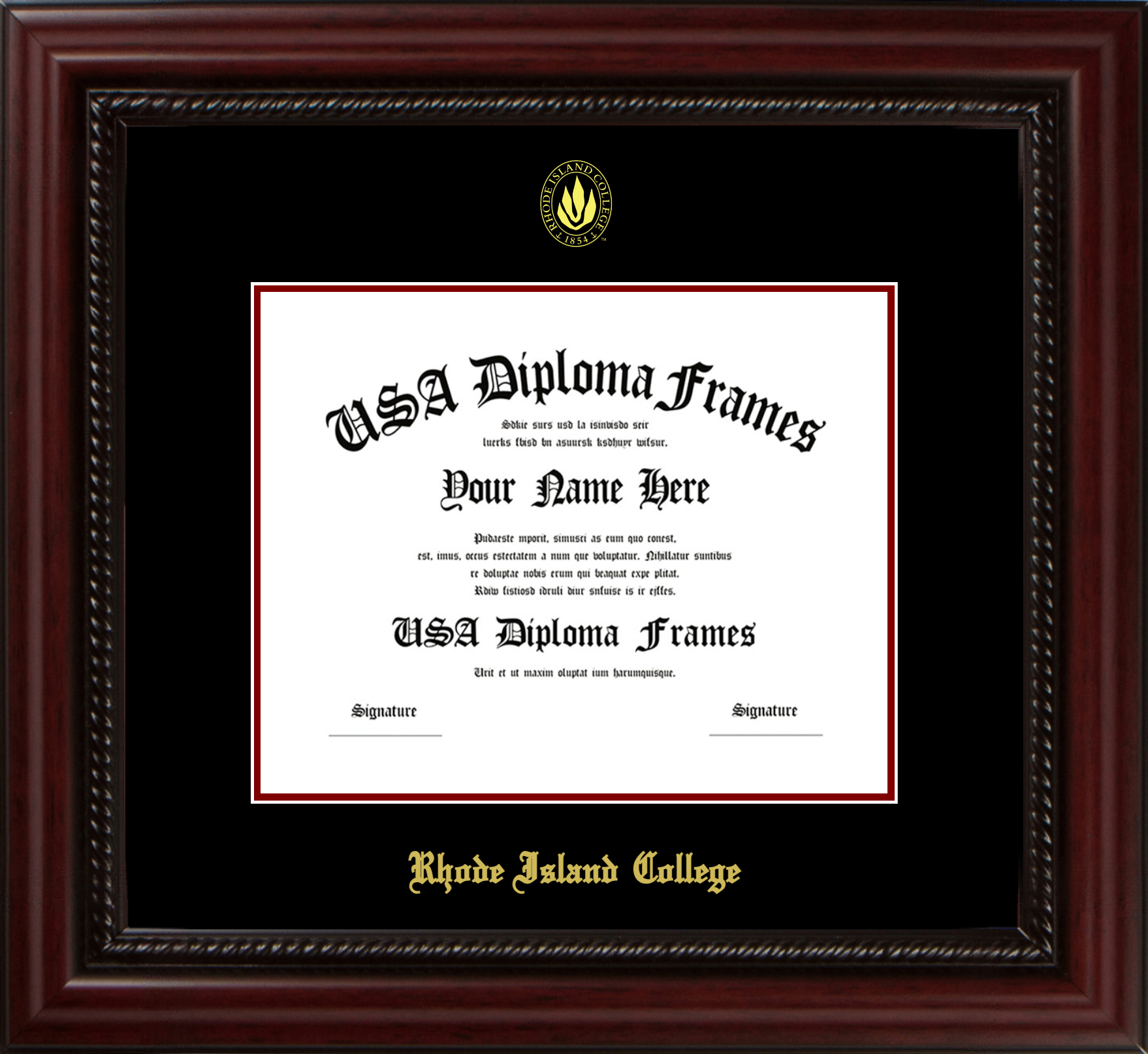 Rhode Island College – Single Horizontal Document ( Diploma ) – Executive Cherry Rope – Black Mat – Maroon Accent Mat – With Seal(University Seal Gold) – With Gold Embossing (Rhode Island College)