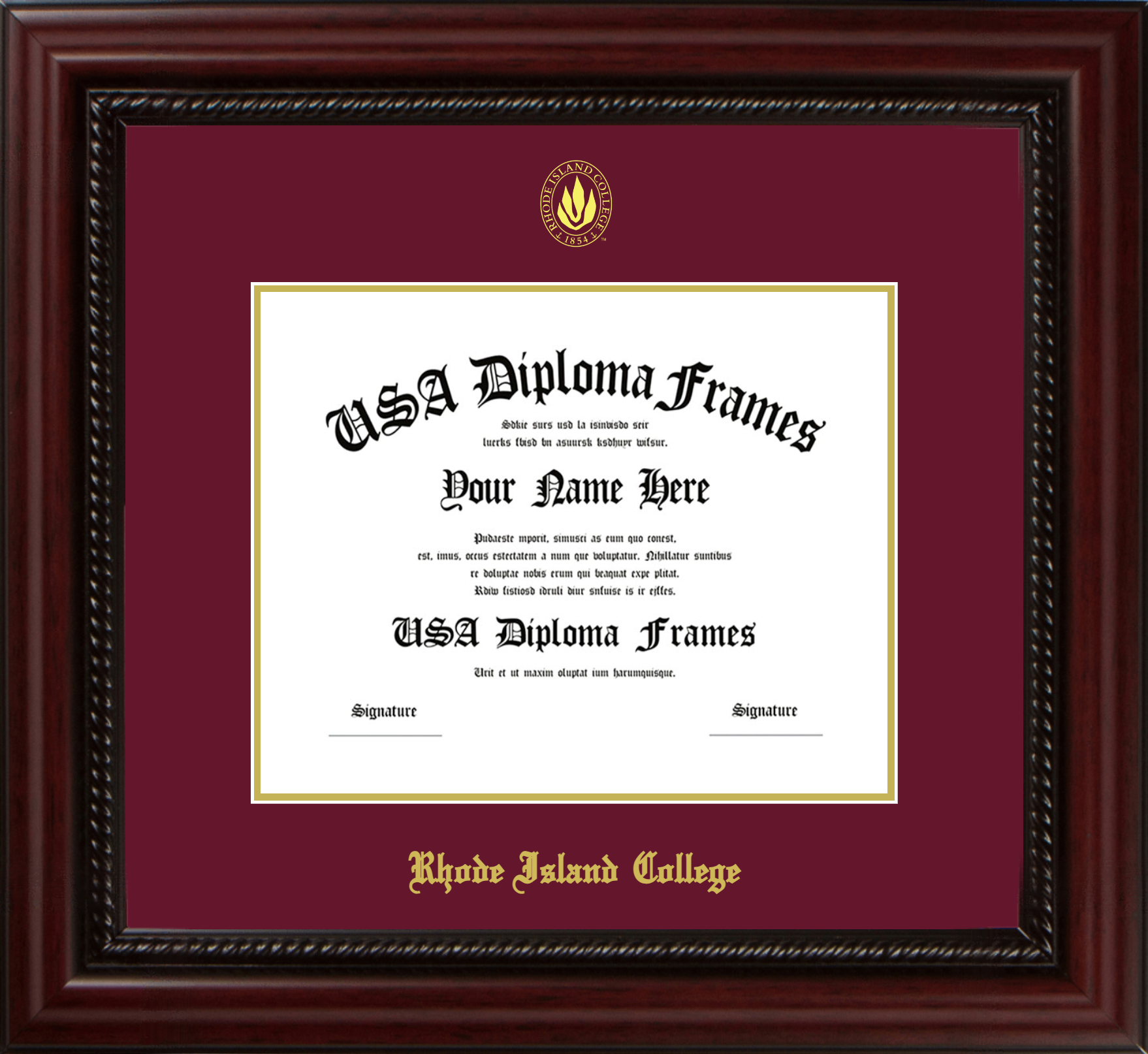 Rhode Island College – Single Horizontal Document ( Diploma ) – Executive Cherry Rope – Maroon Mat – Gold Accent Mat – With Seal(University Seal Gold) – With Gold Embossing (Rhode Island College)