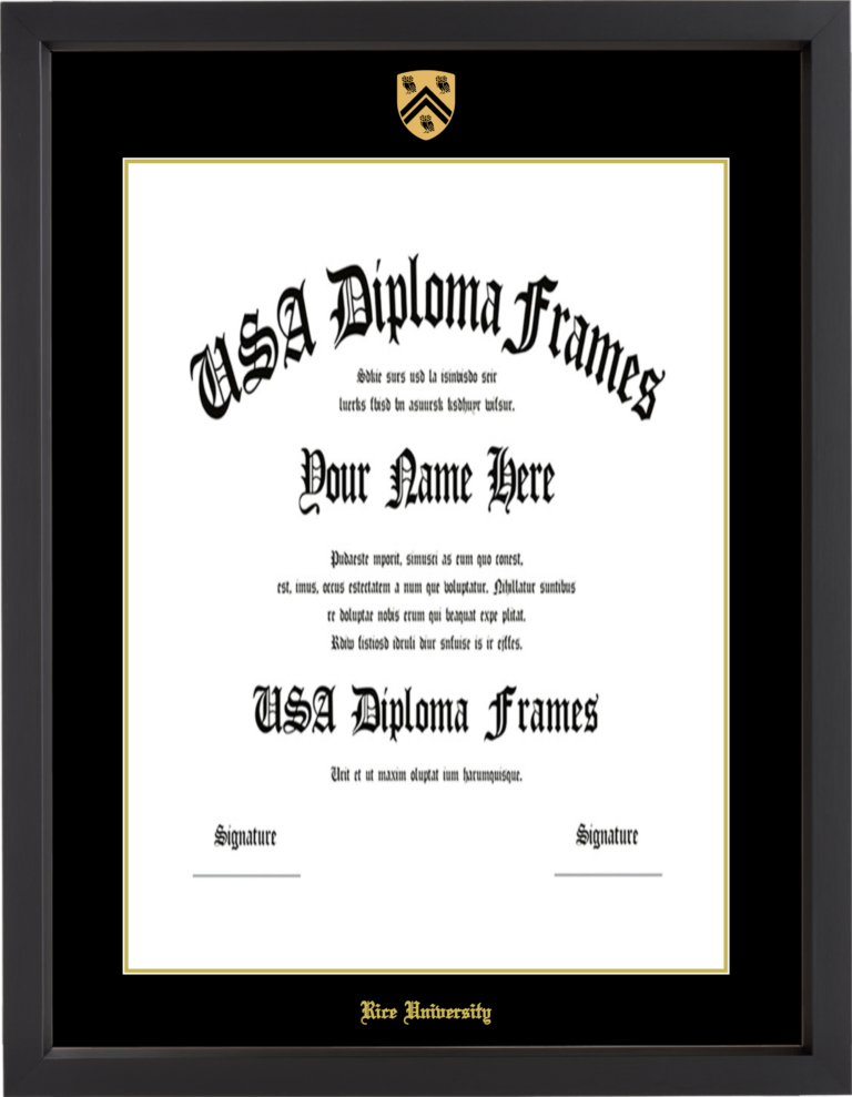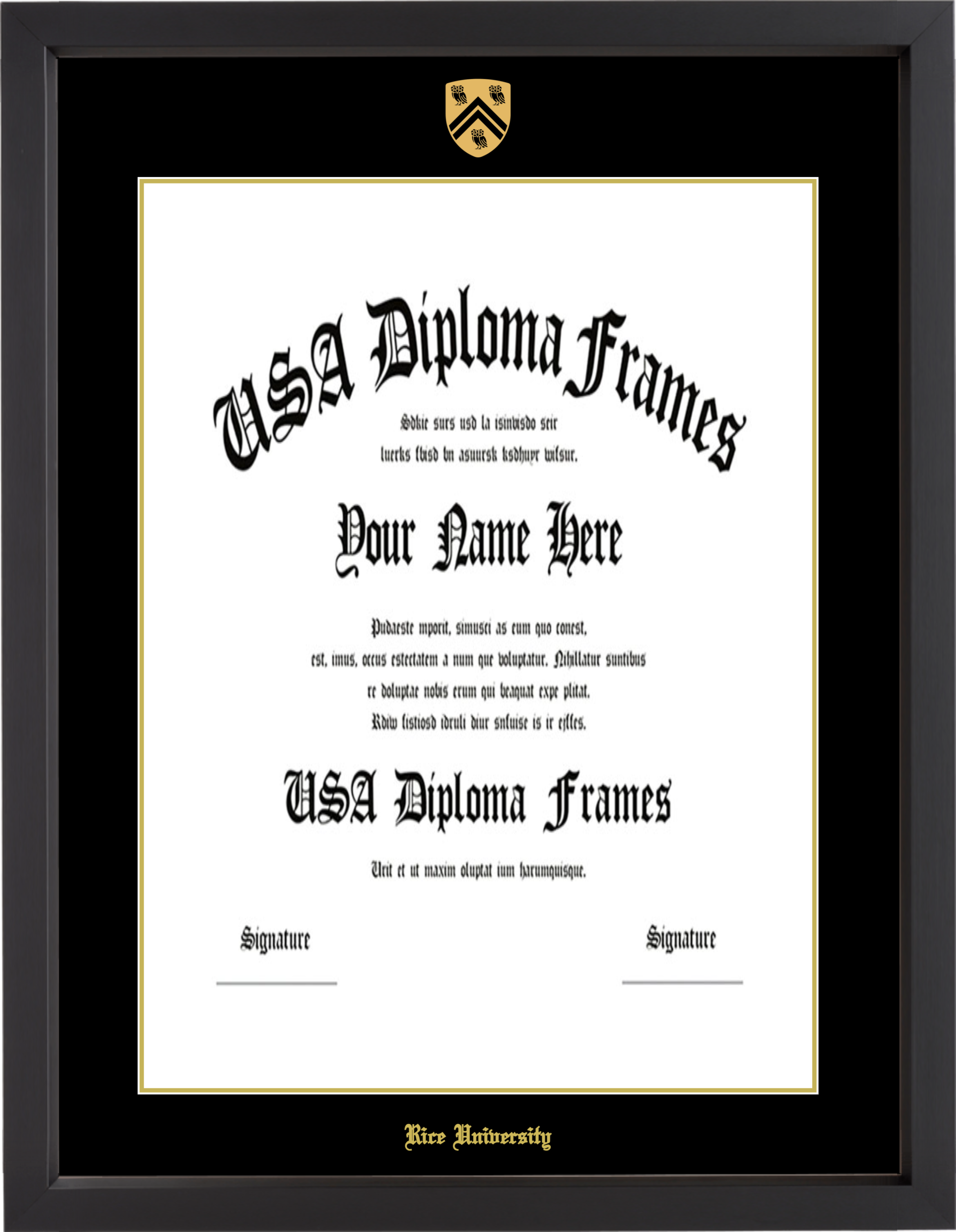 Rice University Diploma Frame – Black Matte – Black and Gold Mat